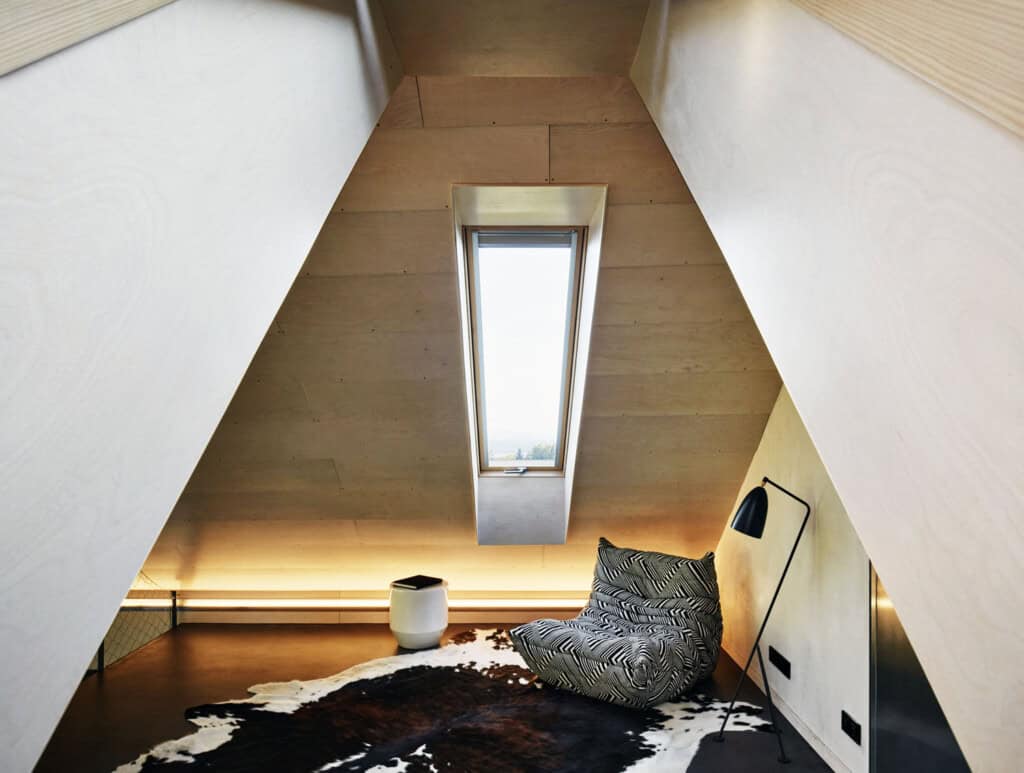 V kraji pod Ještědem hodně fouká vítr, je tam poměrně často mlha, hodně prší. Takže bylo důležité, aby část terasy byla zastřešená. Proto jsme hmotu domu „přetáhli“ z interiéru ven, chtěli jsme smazat rozdíl mezi interiérem a exteriérem velkými prosklenými plochami. Navrhli jsme nestandardní řešení, kdy se dvě velká posuvná okna rozjíždějí v rohu, v němž se nenachází žádný sloupek. Pokud se tyto dveře otevřou, interiér se zde naprosto volně propojí s exteriérem a člověk se stane součástí okolní krajiny. Použili jsme poměrně kvalitní hliníkové profily s trojsklem, s vysokým tepelným odporem, takže s tepelnými úniky žádný velký problém nevznikl.