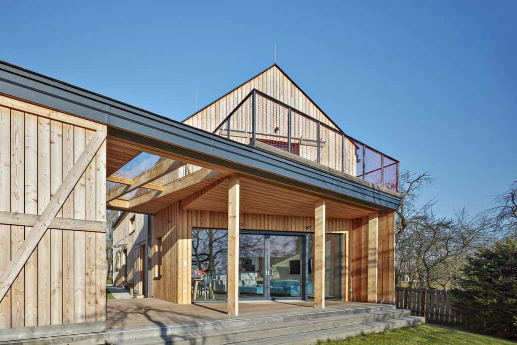 Na místě venkovského domku v centru malé středočeské obce vyrostla moderní energeticky úsporná dřevostavba. Do návsi je obrácena omítnutým štítem, který ctí tradici venkovských stavení, jinak se však zvenčí i uvnitř hrdě hlásí ke své přírodní dřevěné podstatě.