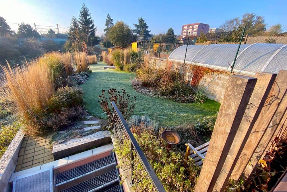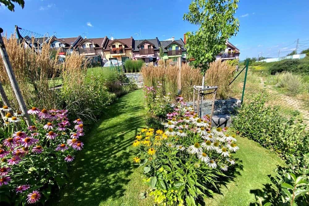 Zahrada u domu v řadové zástavbě je vždy problém. Bývá extrémně úzká, takže nebývá snadné do ní umístit funkční celky. Zahrada nad roklí v Benešově ukazuje, že takový prostor lze vyřešit vkusně a vynalézavě. Vešlo se sem dětské hřiště, několik míst s posezením, záhony s květinami, bylinkami i zeleninou a kompostem. Je to výborný příklad řešení pro podobně stísněné zahrady, protože řadových domů je po republice spousta.