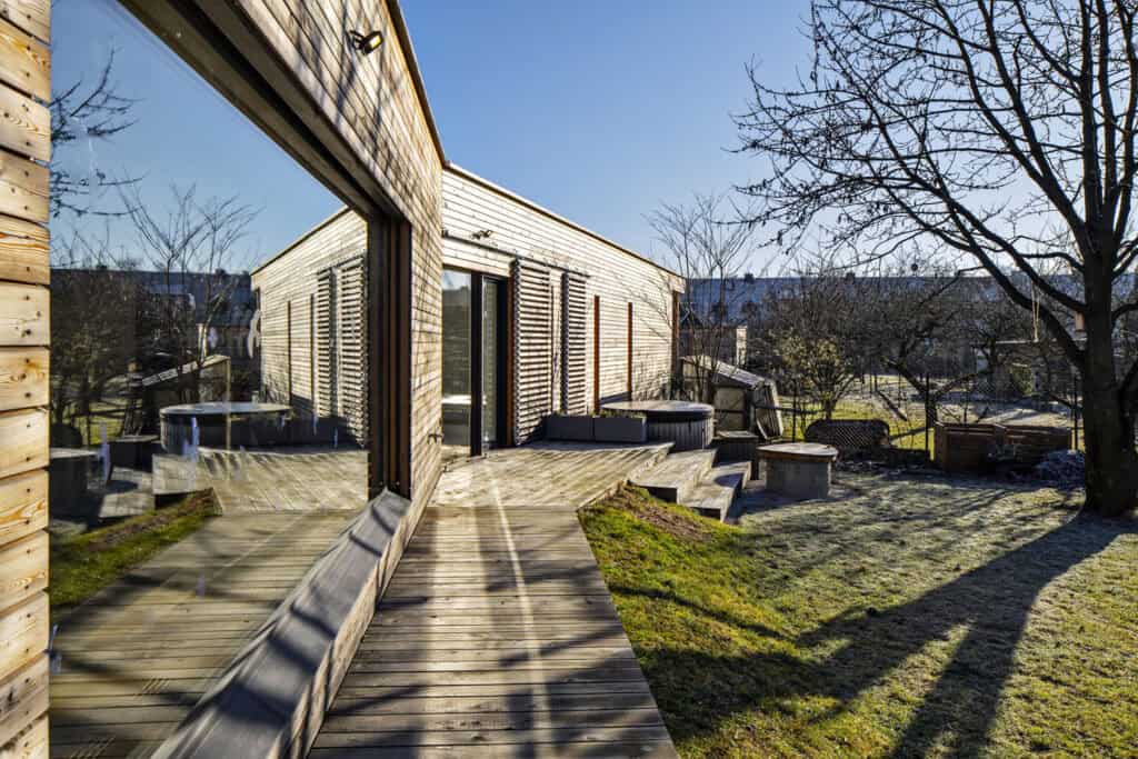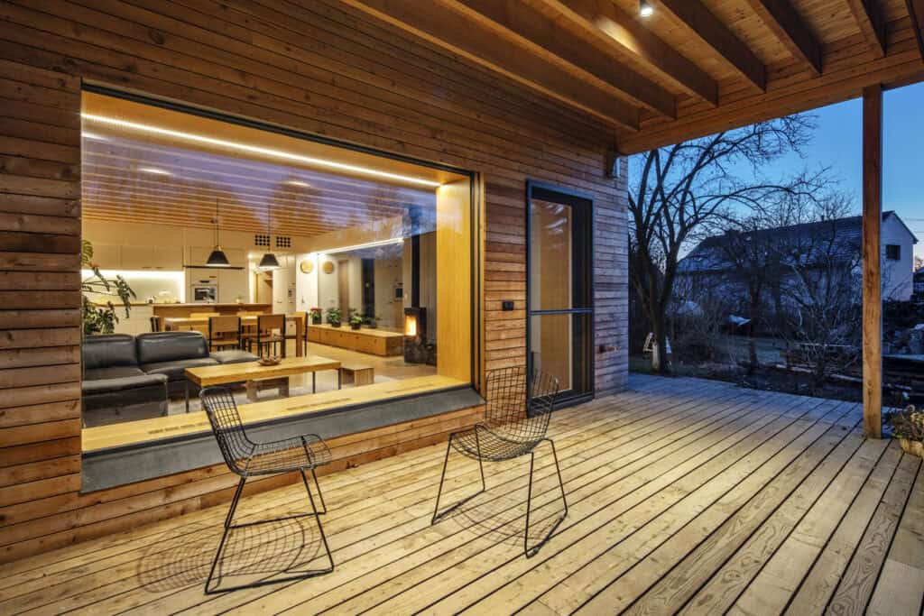 Rodinný dům na Hané měl docela komplikované zadání: parcela nepravidelného tvaru se v jednom místě zužuje na pouhých deset metrů, u příjezdové cesty má souseda hned za plotem. Jak už je v ateliéru MOLO architekti zvykem, vznikla dřevostavba s velkými okny a tentokrát i několika terasami, které pozemek člení – je tu divoká zahrada, sad, klidné zákoutí pro odpočinek i zeleninové záhonky.