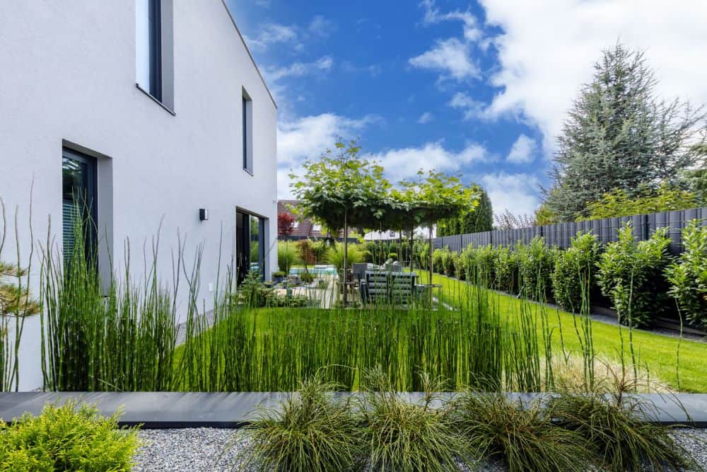 Jednotlivé zóny zahrady jsou funkčně i pohledově provázány s interiérem a sladěny i co do stylu, výběru materiálů, barev i dekoračních prvků. I zde se udává tón orientální inspirace, důraz na harmonii a jednoduchou údržbu.
