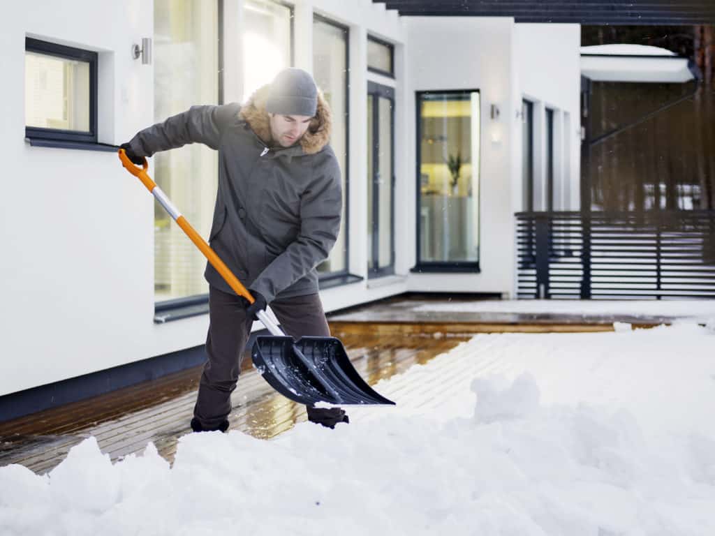 Pro menší či méně zasněžené plochy, jako jsou terasy nebo schody, může na zametání čerstvého sněhu stačit i kvalitní koště. Při silnější sněhové pokrývce však použijte nejdříve hrablo či lopatu. Zbytky sněhu po odhrnutí je nutné odmést, aby z nich nevznikla zledovatělá vrstva, která je obzvlášť nebezpečná při dalším sněžení. Lopata nebo hrablo se hodí i na úklid sněhu ze střechy.