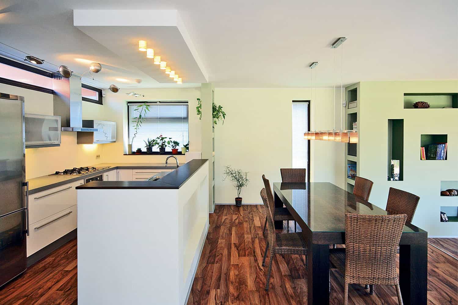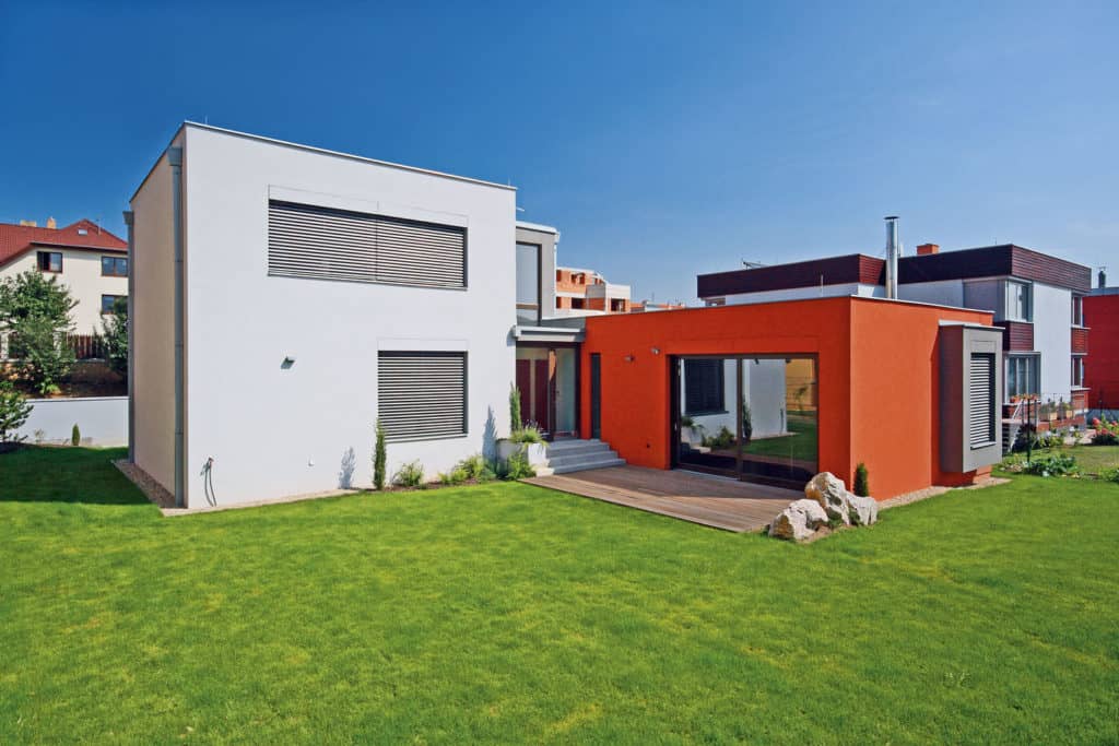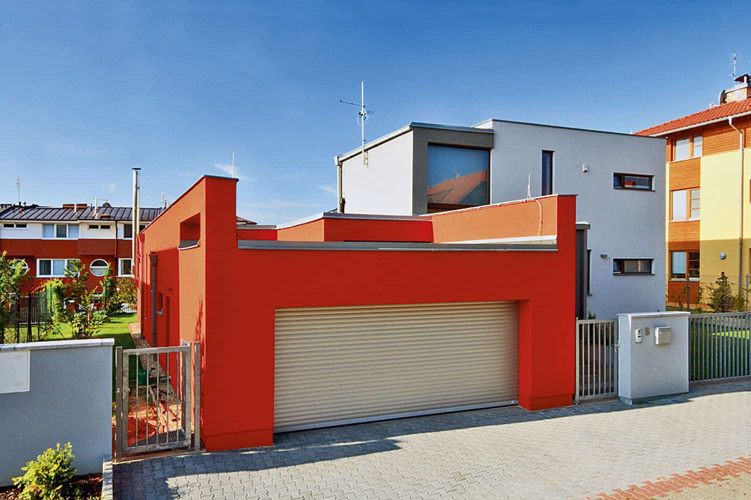 Kombinace bílé, šedé a červené mají v oblibě módní návrháři a designéři, v rodinné zástavbě se s setkáváme méně často. V případě nového domu v jedné z okrajových pražských čtvrtí zajímavým způsobem podtrhuje čistý architektonický koncept.