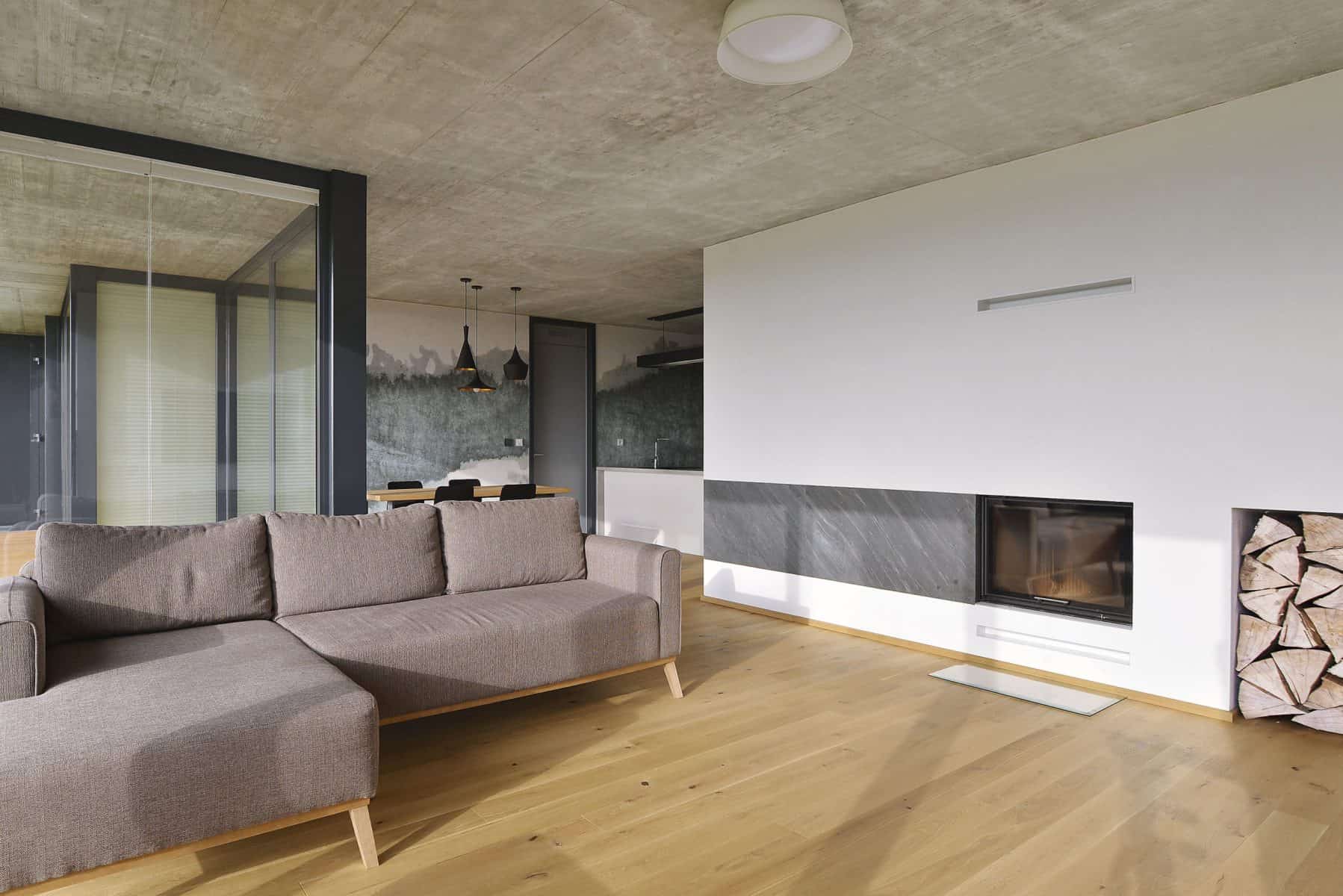 Zadání stavby architekti z ateliéru Stempel – Tesař vždy nechávají vypracovat každého člena rodiny zvlášť. „Někdy se ve svých představách shodují, jindy ne. Přesto lze v každém případě najít spojení, ve kterém uspokojíme podstatné požadavky všech členů domácnosti,“ říká Ing. arch Jan Jakub Tesař. I v tomto případě se oba manželé, kteří dům obývají, vyjádřili jasně: chtěli dům tvořený z obytné a pracovní zóny, velkou parkovací plochu, garáž vhodnou i jako skladiště, obytné podlaží s velkým jídelním stolem propojené s terasou a menší ložnici s oddělenou šatnou.
