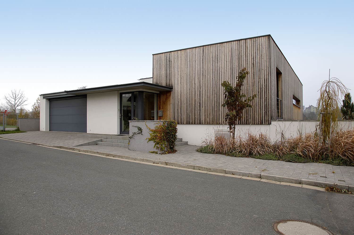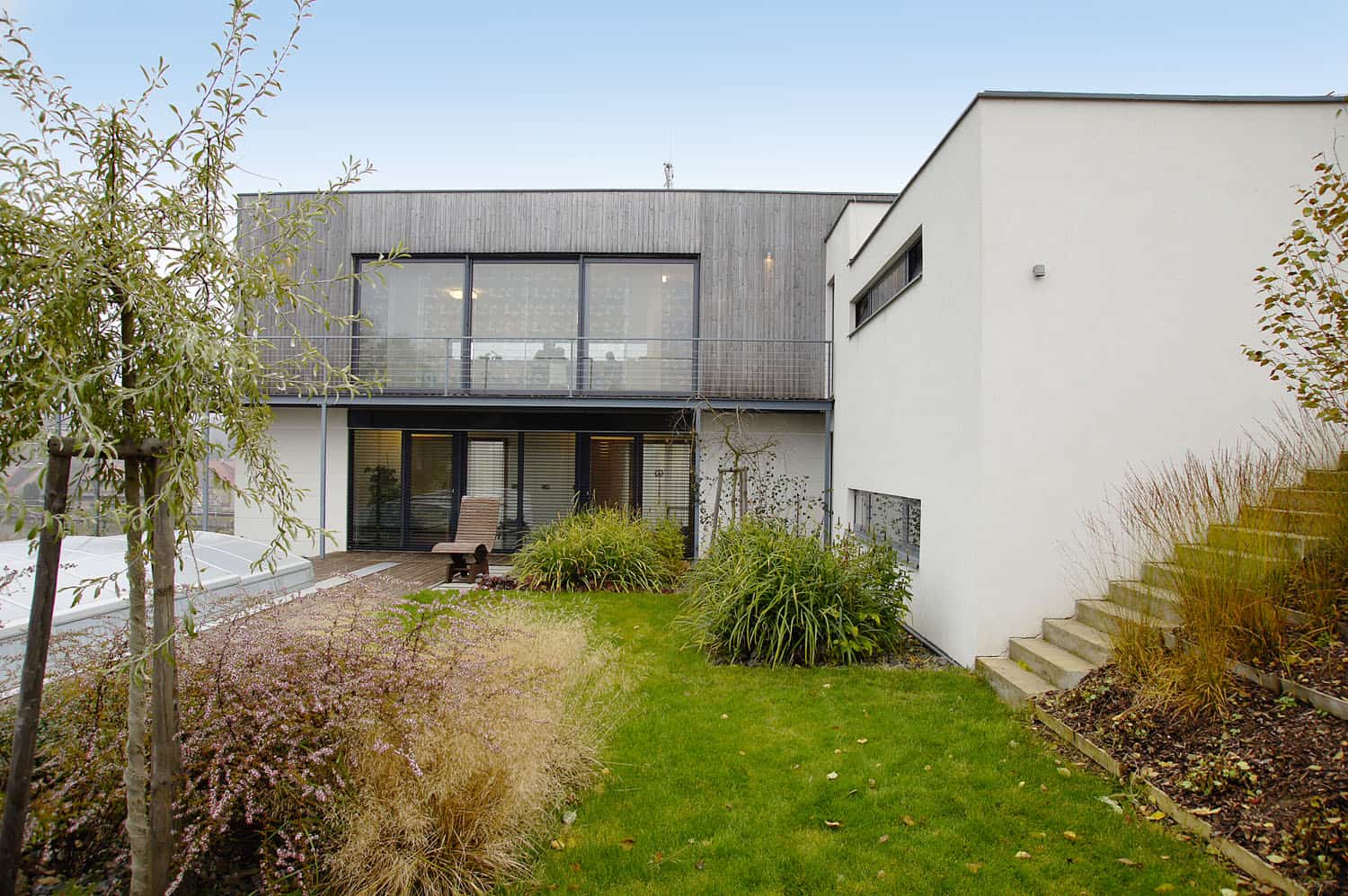 Mladí manželé dříve bydleli v podkrovním bytě blízko svého nynějšího bydliště. Pozemek v jižně orientovaném svahu nad rybníkem se původně podobal spíše džungli než stavební parcele, ale hezký výhled, blízkost vody a dobrá cena byly dost pádnými argumenty. „Navíc v okolí nevznikne žádná další zástavba. Nový satelit OE směsici více či méně zdařilých domů máme za zády, takže nerušený výhled na vodu a do krajiny zůstane zachován,“ vysvětluje nám hostitel na úvod naší návštěvy.