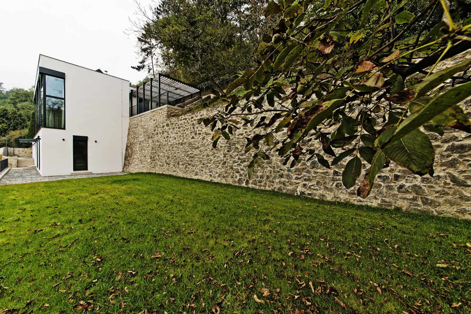 Architekt Michal Grošup ze studia Adam Rujbr Architects nás uvedl do situace: „Zpracovávali jsme pro investora rekonstrukci rodinné vily, a protože naše spolupráce byla velmi dobrá, obrátil se na nás i s přestavbou malé účelové stavby na svém pozemku.“ Ve svahu na kamenných terasách vyrostl ateliér, který se designovými technickým zpracováním blíží k dokonalosti.
