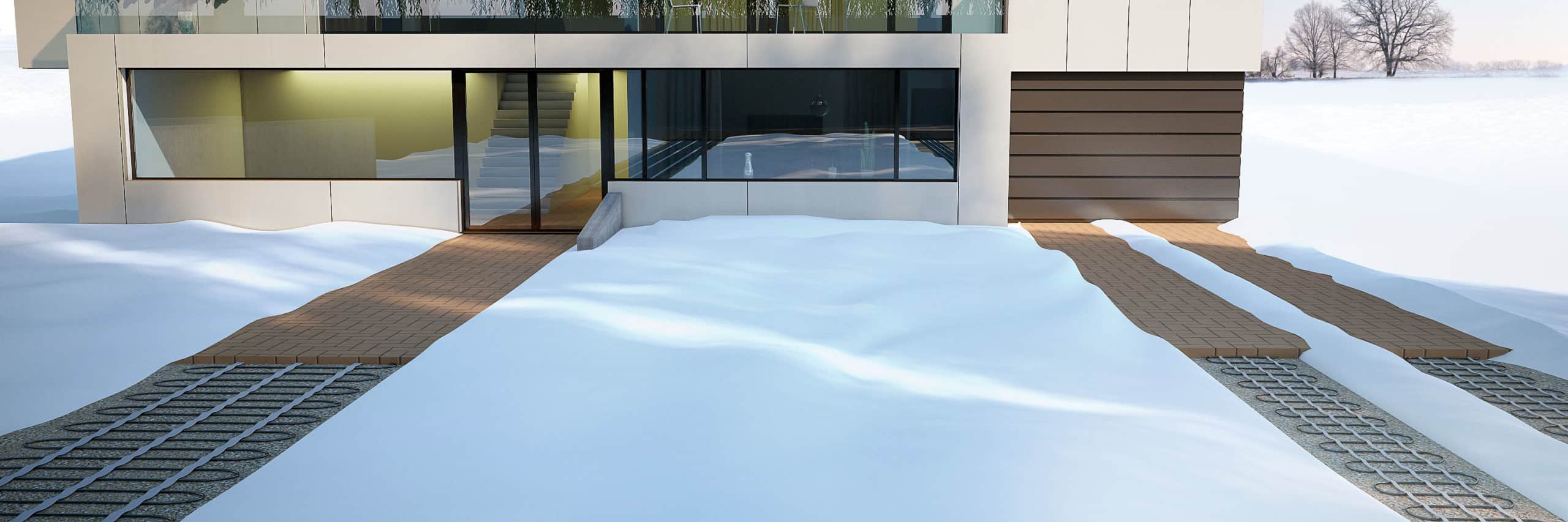 Konec namrzlých chodníků, venkovních schodišť nebo cest a okapů – chraňte venkovní partie domu před sněhem a ledem pomocí elektrických topných prvků.