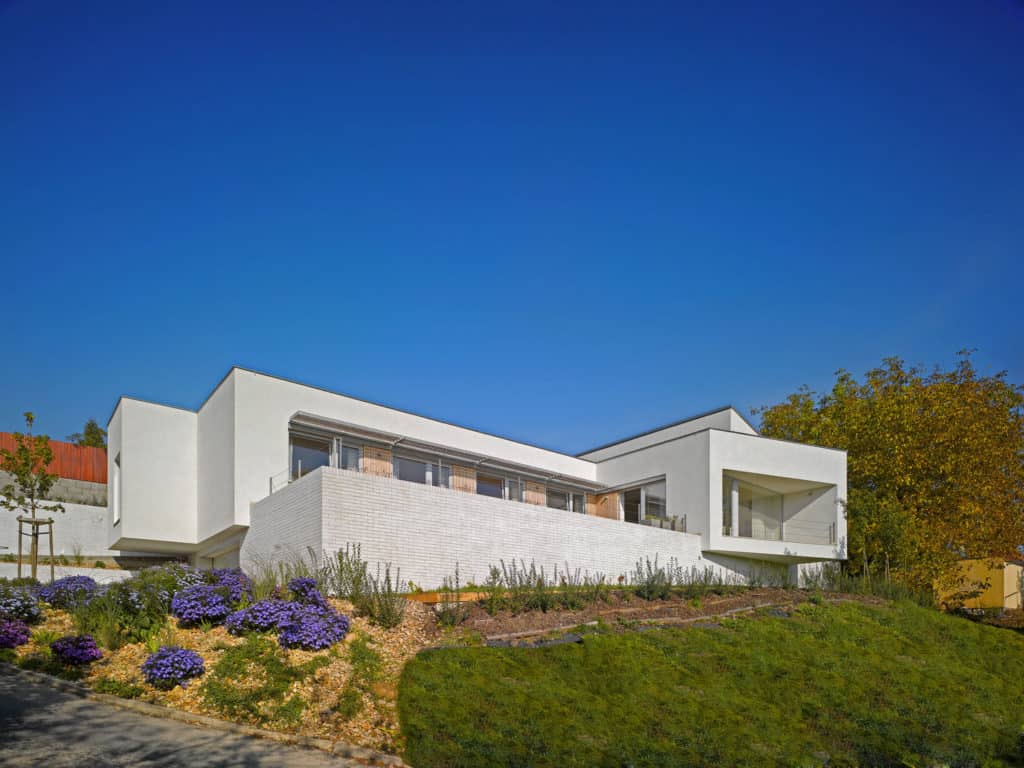 Sněhobílá vila, postavená na krásném místě v menším moravském městě, jako by se chtěla vznést nad údolí. Vzletné řešení paradoxně vzešlo ze složitých podmínek na parcele.