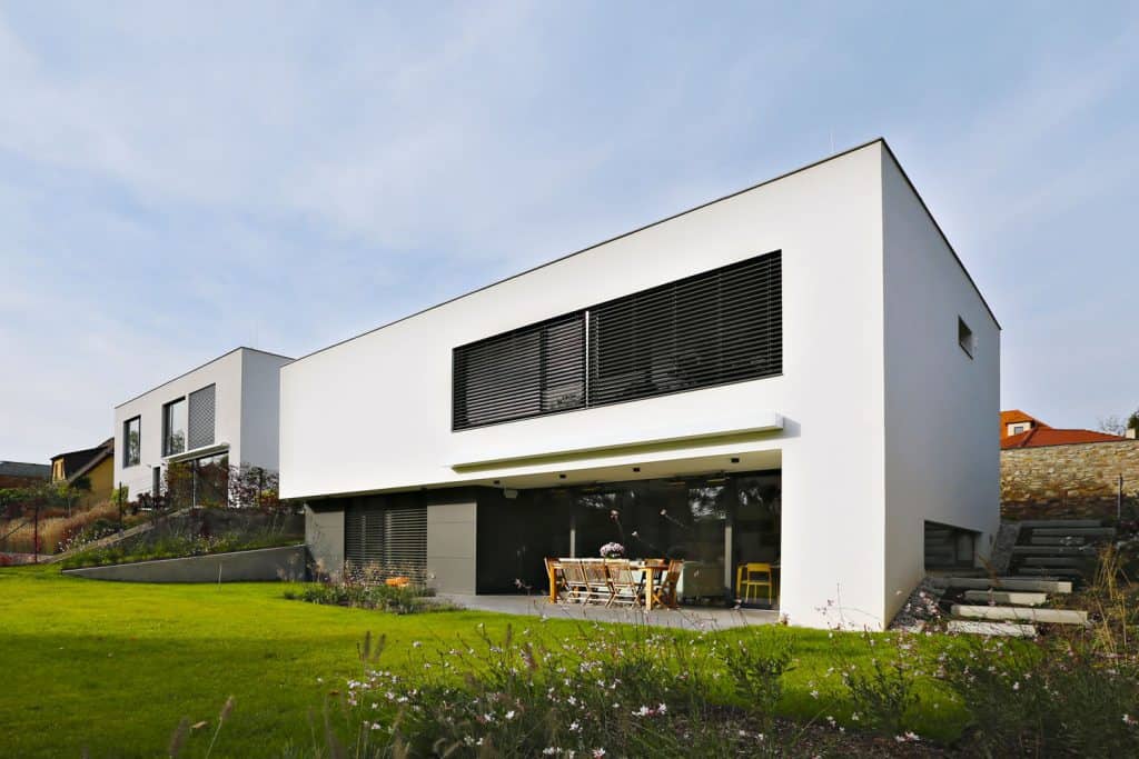 Dvě vily v zahradě za starou zdí působí dojmem, jakoby se jejich majitelé dohodli a zadali projekt ateliéru, který je blízký jejich srdci se záměrem, že chtějí vytvořit blízké sousedství. Blízké nejen z hlediska krátké vzdálenosti, ale i názorů na estetiku a kvalitu bydlení. Příběh je ale jiný: první dům byl postaven už před pěti lety, druhý byl dokončen nedávno.