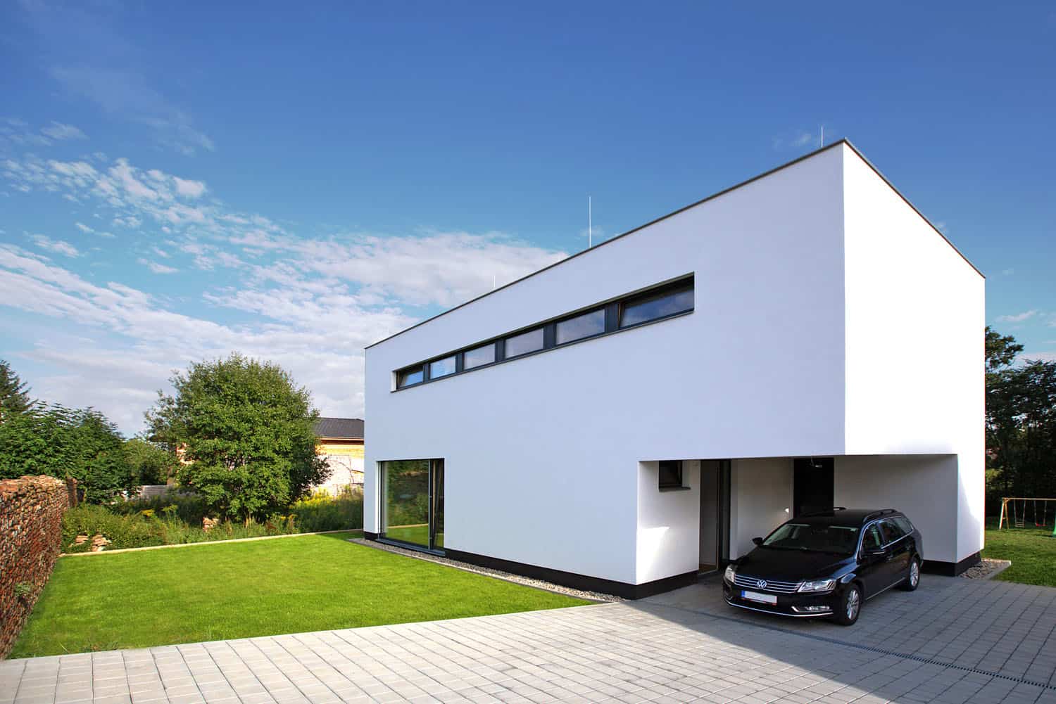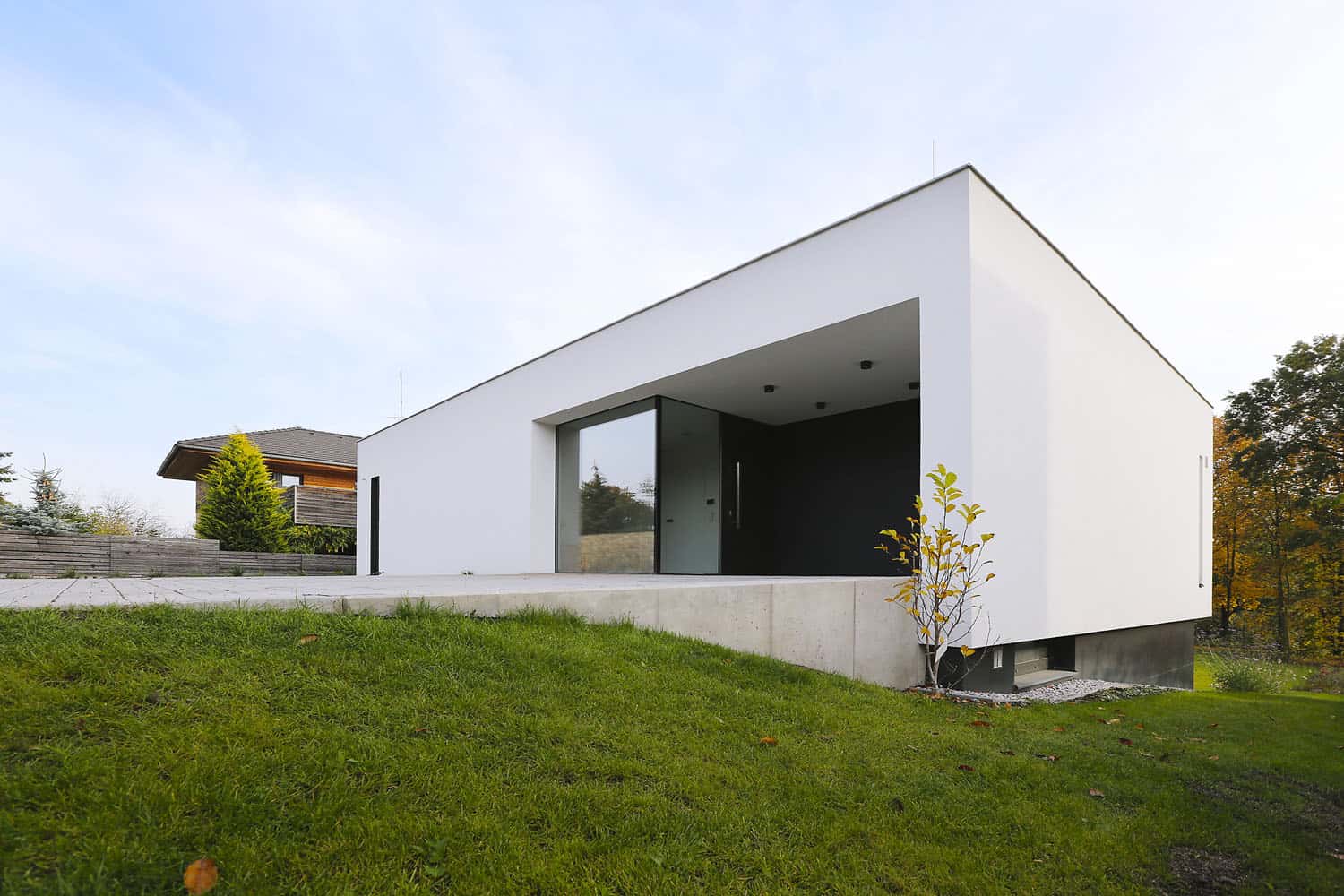 Výsledek působí čistě a přirozeně. Stavba se nepovyšuje, přitom má svoji noblesu. Přispěly k tomu dokonalé proporce fasády s čistými horizontálními liniemi. Její krásu ještě podtrhují formáty oken s dřevohliníkovými rámy.