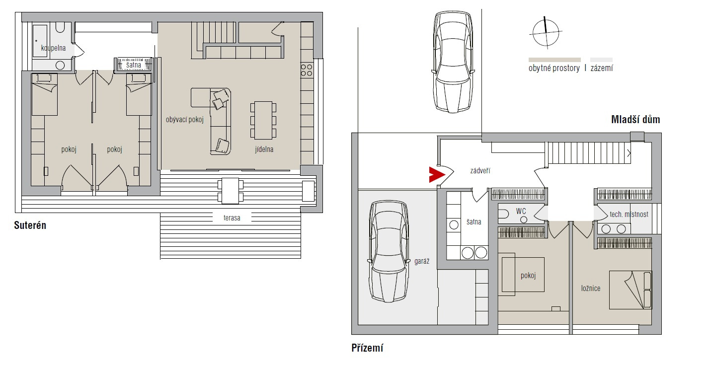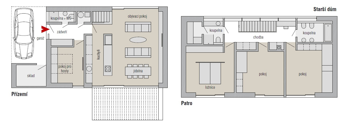 ▪ Užitná plocha: Starší dům 163 m2, mladší dům 178 m2