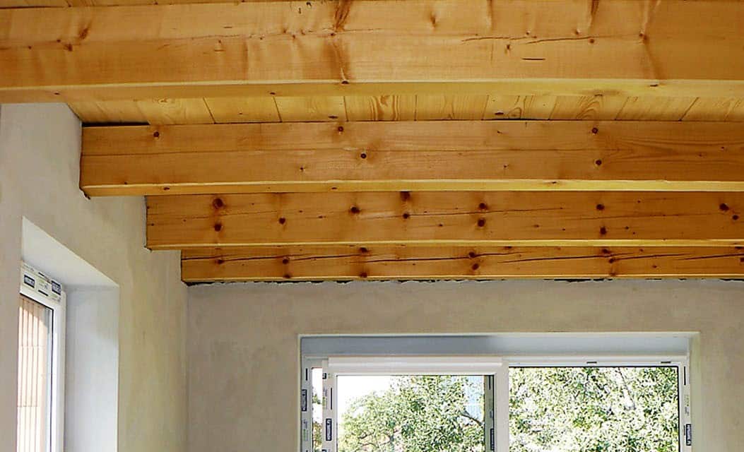 Když jsme zvažovali, jaké udělat v domě stropy, nabízely se dvě varianty. Betonové nebo dřevěné. Z praktického hlediska se manželovi více zamlouvala varianta dřevěných. Není třeba jeřáb na složení těžkých betonových dílců ani další mixy s betonem na zalití spojů, stropy se pak nemusí složitě omítat ani malovat. Já si přála dřevěné stropy od počátku. Pokud by bylo na mně, pořídila bych si roubenku, to však neprošlo už v prvotních úvahách, neboť se cena lehce vymykala našim finančním možnostem.
