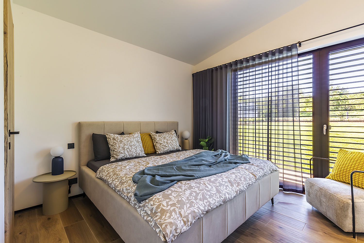 Projekt Bydlení Golf Benátky plánuje výstavbu celkem 50 moderních dřevostaveb. Vzorový dům o dispozici 4 + kk představuje komfortní bydlení s obývacím pokojem spojeným s kuchyní a přímým vstupem na terasu, ložnicí se šatnou a vlastní koupelnou, druhou koupelnou, dětským pokojem, pokojem pro hosty a technickou místností. Ukazuje, jak může vypadat moderní, funkční a zároveň útulné rodinné bydlení v harmonii s okolní krajinou.
