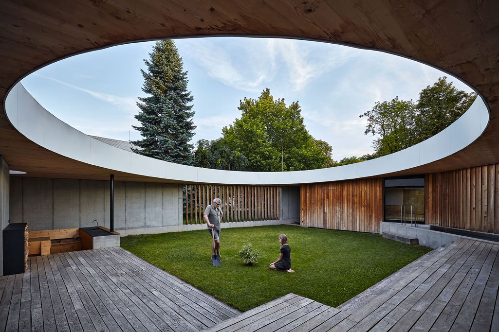 Velká část moderních rodinných domů čerpá z krásných výhledů do krajiny. Vila postavená v Novém Jičíně vychází z opačného principu – je soustředěna do atria koncipovaného jako soukromá vnitřní obytná krajina. Zároveň umožňuje průhledy do okolního světa. Za jedinečný koncept, vysoce účelné individuální bydlení, působivou kultivovanou architekturu a nápadité využití materiálů získala stavba hlavní cenu odborné poroty v soutěži Stavba roku 2021.