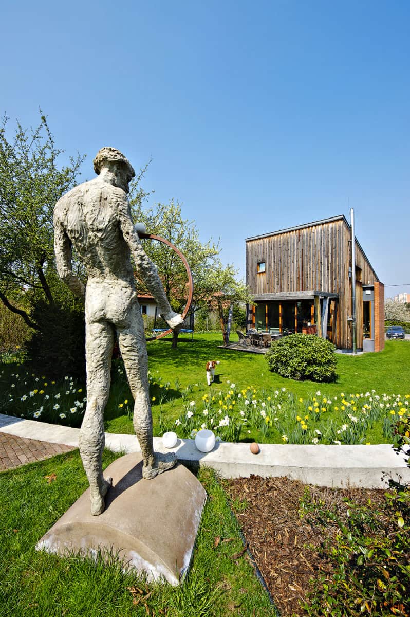 Příměstská zahrádkářská oblast v posledních letech zarůstá novými rodinnými domy. „Hledali jsme odpověď na otázku, jak se chovat v rekreační zóně, která má svá architektonická specifika,“ říká autor projektu, Ing. arch. Jaromír Veselák ze studia Aeroplan. „Šlo nám o zhodnocení potenciálu místa a respektování okolí. Nepřipadalo v úvahu, aby dům vypadal jako klasický katalogový projekt umístěný v zahrádkářské kolonii. Proto nevyčnívá.