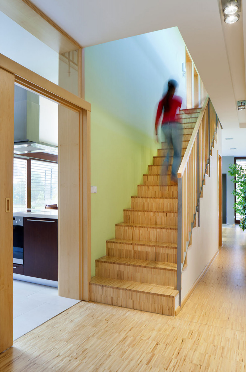 „Nová čtvrť na náhorní plošině nad řekou nabízí pohodové prostředí s hezkým výhledem, nejsme tu ale „ztraceni“ v satelitu bez služeb a dopravního spojení. Nechybí tu zeleň, blízko je škola, k obchodům a stanici vlaku je to deset minut pěšky, jezdí sem i veřejná autobusová doprava. Pozemek o velikosti zhruba 30 x 40 m na východní straně sousedí s ulicí ohraničující starší zástavbu, ze tří stran stojí nové domy s již vzrostlými zahradami. Parcela je ale velká, máme dostatečný odstup od sousedů i soukromí.“
