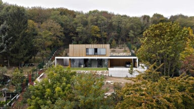Protáhlý lichoběžníkový pozemek o rozloze přes 1200 metrů čtverečních se nachází v klidné okrajové zóně bratislavské čtvrti Dúbravka. Dům, který tu vyrostl, staví na principech přiznaných konstrukcí a harmonického souznění s okolním prostředím. Pozemek pozvolna spadá od okraje listnatého lesa směrem k východu a ze severní strany je lemován příjezdovou…