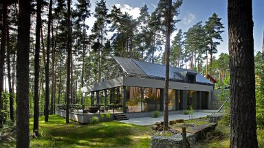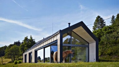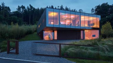 Tento dům měl ojedinělé zadání, jeho majitelé si přáli, aby byl pokud možno celý odlitý z betonu. Požadavek tedy nebyl v dispozicích, ale v materiálu. V pražské Troji tak vznikla vila, na niž autoři použili hladký pohledový beton s přidaným bílým cementem a tmavší s černým pigmentem, který je také více plastický díky zvolenému typu bednění. Dům má…