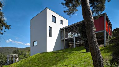V nové zástavbě na okraji malého města na sever od Brna si čtyřčlenná rodina splnila svůj sen o dokonalém bydlení. Poloha s panoramatickým výhledem a velkorysý přístup stavebníků poskytly příležitost experimentovat a realizovat řadu unikátních řešení, sahajících až na hranici možností. Spojením dvou parcel vznikl rohový pozemek s ideální konstelací – mírným sklonem…