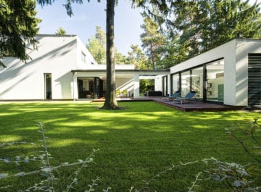 Křehká, rozevlátá v dynamickém půdorysu důstojně tančí mezi stromy zalesněného po zemku – vila z dílny Kyzlink architects & interior nahradila původní domek ze 40. let minulého století. Okolní zástavba odcloněná vzrostlými stromy neruší čistou střídmost dotaženou do detailů uvnitř i vně stavby. Paní domu má ráda stín: „Proto jsem…