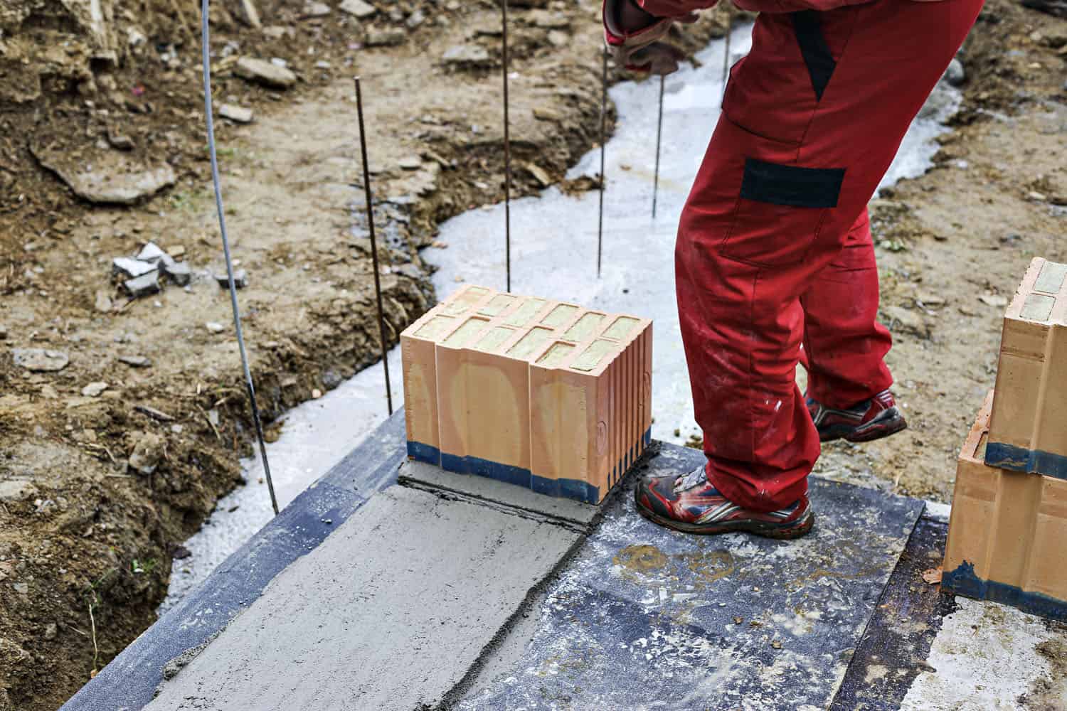 Na našem pozemku máme povoleny dva totožné domy, začínáme jedním, tím horním, abychom nedělali případné chyby dvakrát (a zároveň na druhý musíme zase naspořit). Stavba má obdélný půdorys (zastavěná plocha 100 m2, 95 m2 obytné plochy, přízemí + podkroví). Obvodové zdi domu jsou z broušených cihel Porotherm T-profi plněných izolační vatou. Vnitřní příčky využívají akustických vlastností pálených cihel Porotherm AKU. Konstrukce celého domu tak vědomě rozvíjí stavební koncept e4 skupiny Wienerberger.