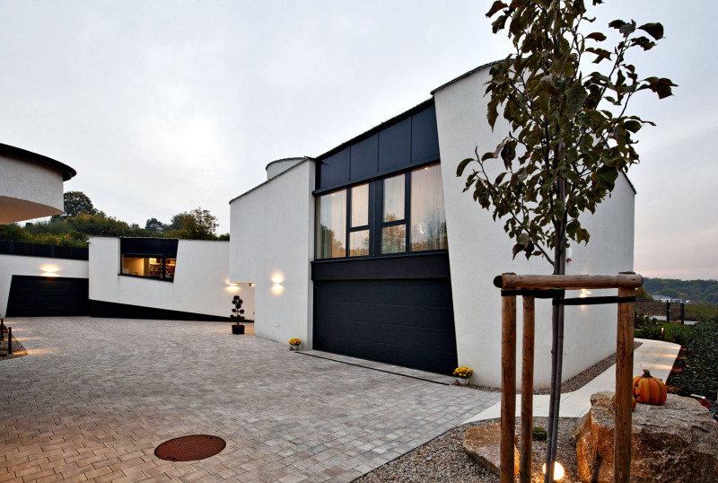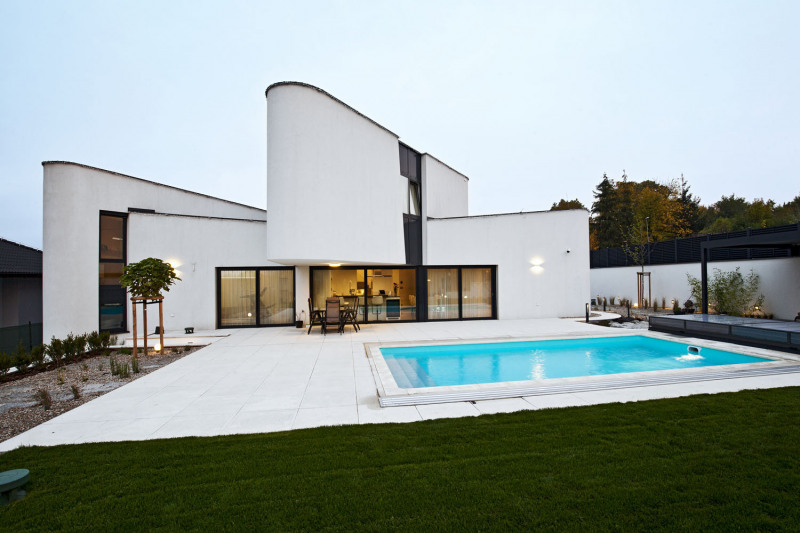 „Dám dělovou ránu,“ zpívá v jednom ze svých největších hitů ikona naší populární hudby. Možná bychom tak mohli přeneseně popsat i příběh tohoto projektu, za nímž stála hlavně odvaha, vytrvalost a odhodlání uskutečnit věci neobvyklé a nevyzkoušené. „Zadání bylo na české poměry velmi benevolentní, stavebníci si přáli komfortní dům s čistými liniemi a nechali mě volně tvořit, ať se ničeho nebojím,“ vypráví Aleš Gadlina. „Pro každé místo hledám ideální a jedinečný tvar, někdy ve více variantách. V tomto případě mě inspirovaly trojúhelníky a klientům se líbila už první skica.“