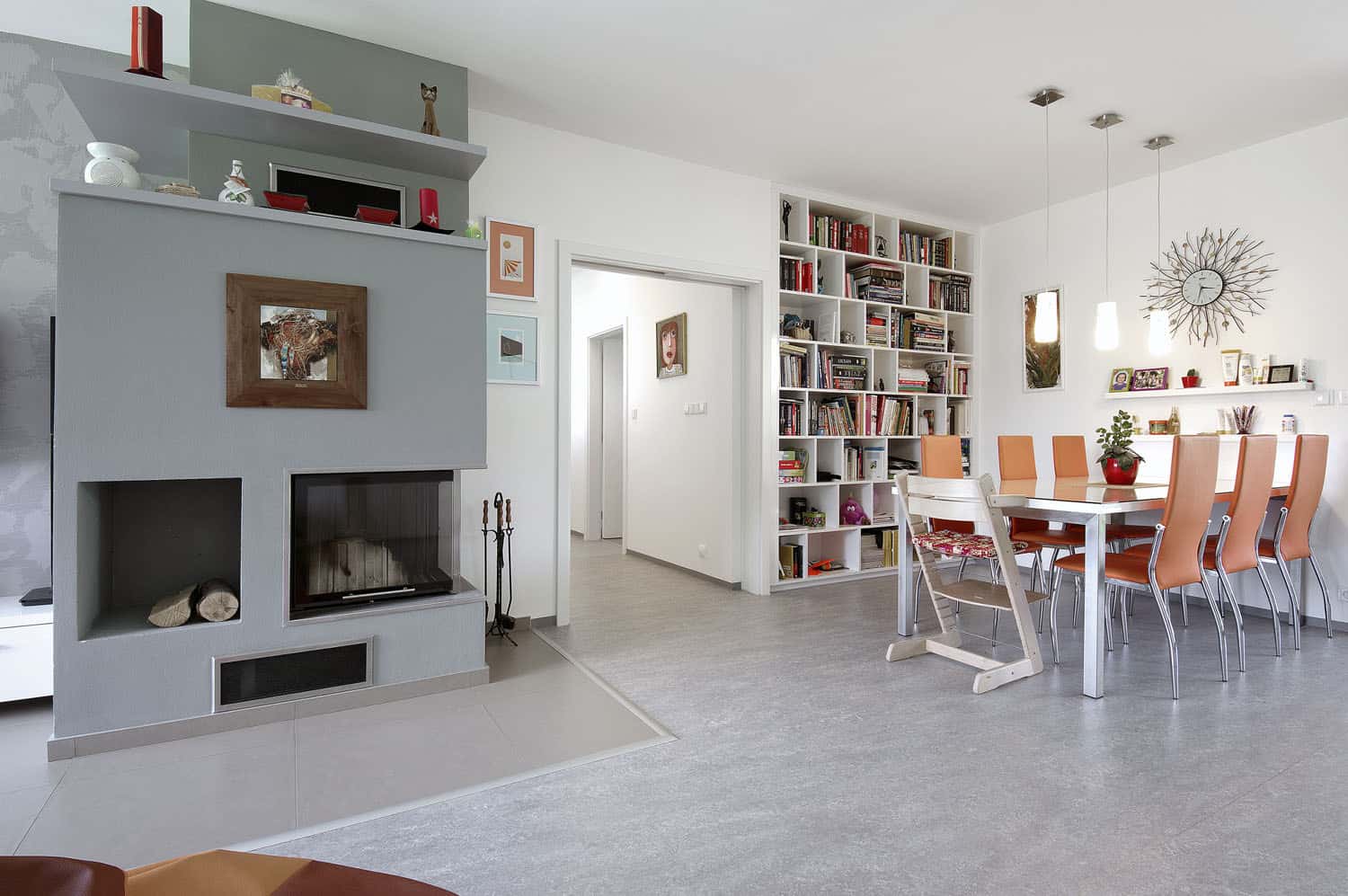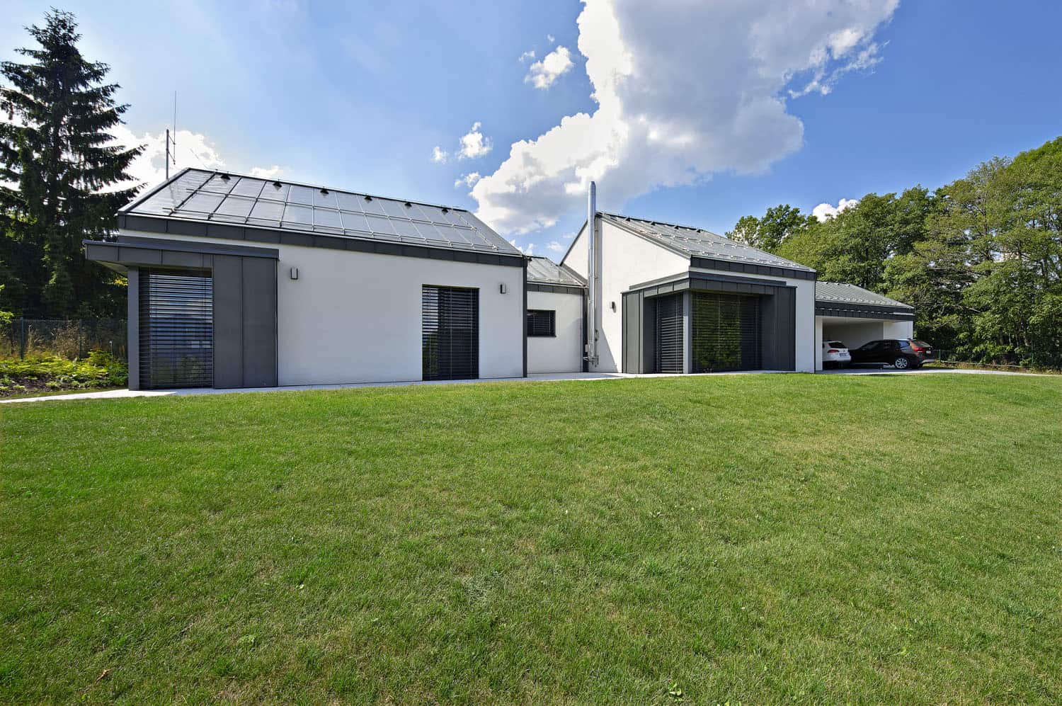 Čtyři vzájemně navazující hmoty propojené podélnou osou vytvářejí dojem soustavy domečků zasazené do svažitého pozemku. Nekonvenční stavba v prostředí Moravskoslezských Beskyd skýtá nádherné výhledy na vrcholy Lysé hory a Smrku, jež hrají důležitou roli také v interiéru. „Dům stojí na jedné z nejkrásnějších parcel, se kterou jsme dosud pracovali,“ říká Michal Janáč ze studia Master Design.