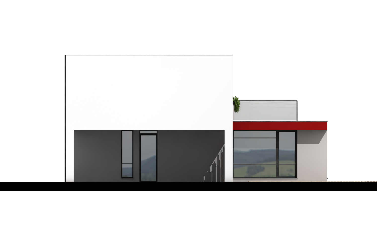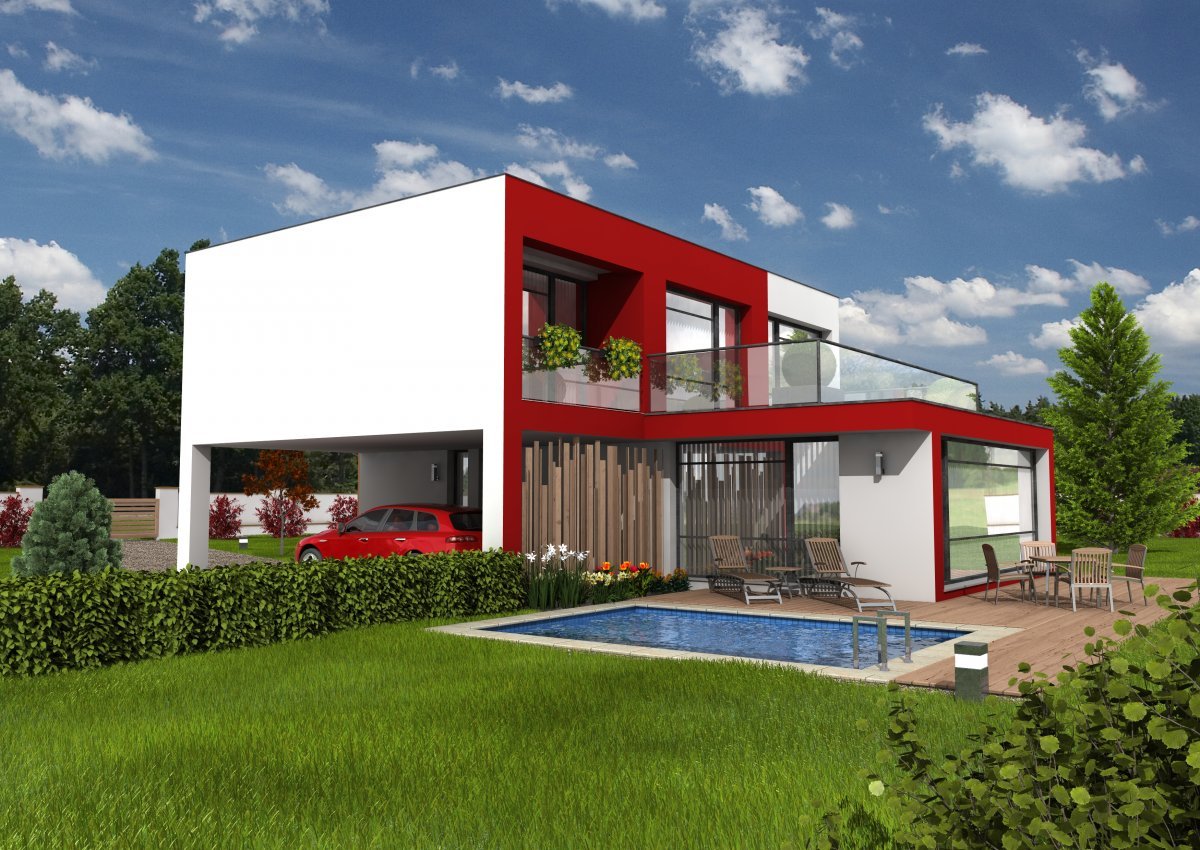 Dvoupodlažní vilka s plochou střechou je jako stvořená do moderní městské čtvrti. Zajímavým prvkem jsou rohová okna, která dávají hodně světla a atraktivní vzhled.