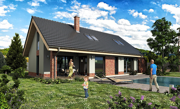 Jednoduchá architektura zapadne do jakékoliv zástavby. Předpokládá se orientace hlavního hřebene domu ve směru severozápad–jihovýchod. Dům poskytne pohodlné a praktické bydlení čtyř- až pětičlenné rodině, s nízkými provozními náklady. Má účelně využitou dispozici, lze přistavět garáž s pultovou střechou nebo přístřešek pro auto.