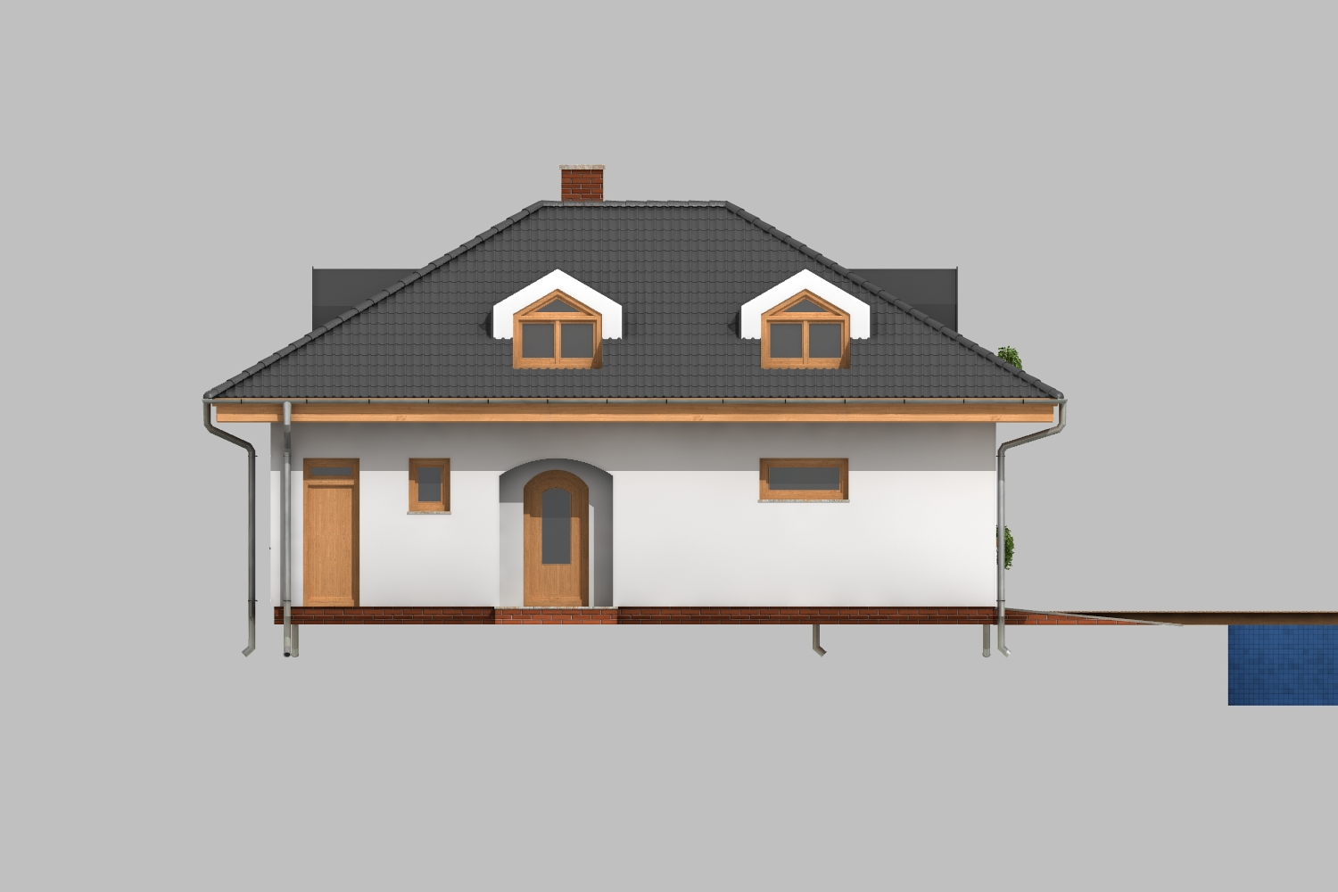 Tato verze domu na půdorysu ve tvaru L s valbovou střechou je určena pro milovníky jižního stylu, obloukových prvků, vikýřů apod. Nabízí k... omfortní bydlení pro čtyřčlennou rodinu, s možností vícegeneračního využití. V přízemí upoutá pozornost velkorysý společný obývací prostor s oddělenou kuchyňskou částí, v podkroví se nachází nadstandardní rodičovská ložnice a prostorné dětské pokoje. Praktická je i integrovaná garáž se vstupem do zádveří.