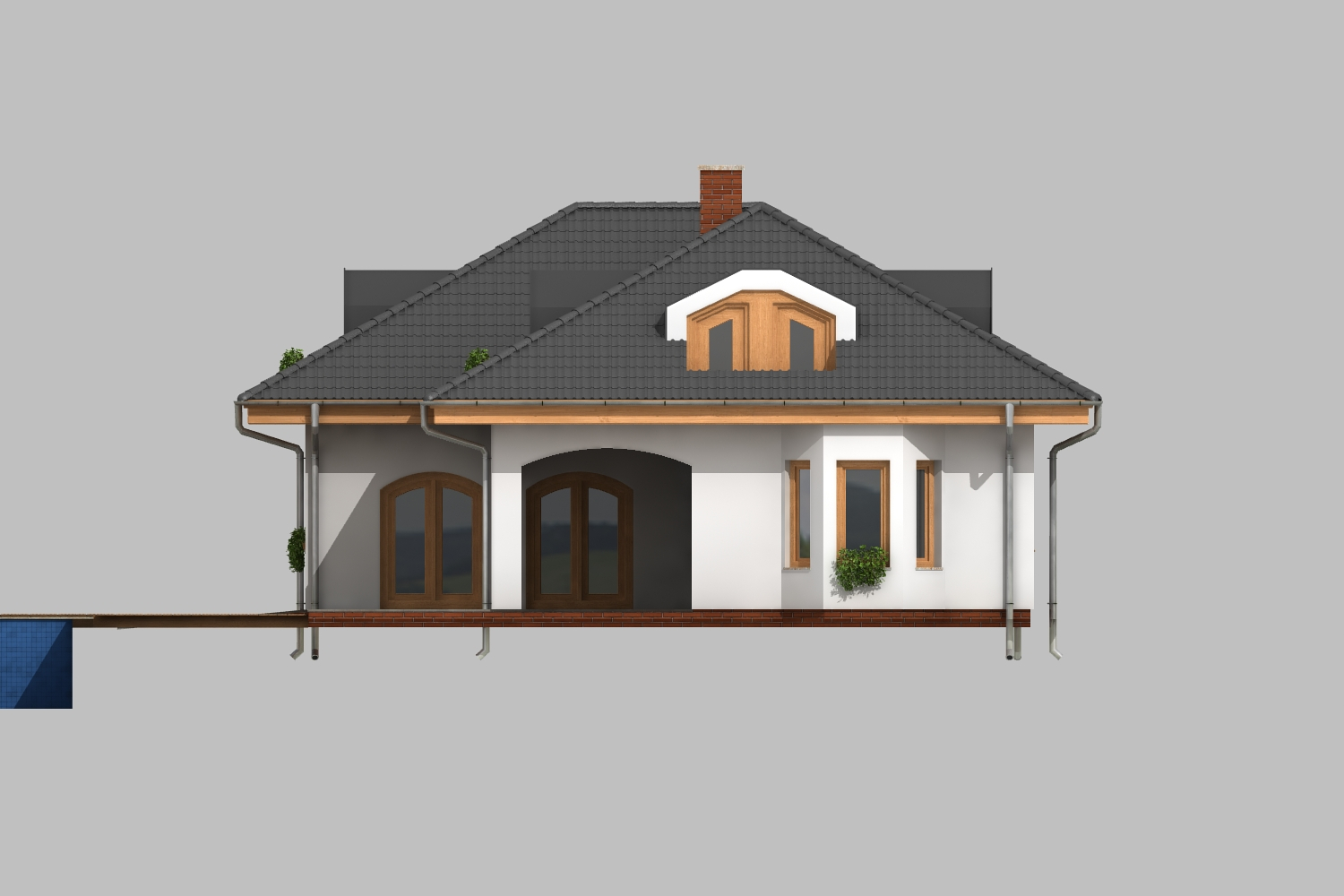 Tato verze oblíbeného domu na půdorysu písmene L s valbovou střechou a krytou terasou je určena pro milovníky jižního stylu – oblouků a vikýřů. Nabízí pohodlné soužití tří generací – v přízemí se kromě společného obývacího prostoru nachází velká ložnice s vlastním zázemím a také pracovna a pokoj pro hosty. V podkroví se nachází velkorysá rodičovská ložnice, nadstandardní rodinná koupelna a pohodlné dětské pokoje, v celém domě je dostatek úložného prostoru. Za zmínku stojí i prakticky řešená kuchyň oddělená od obývacího pokoje.