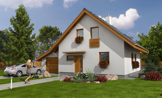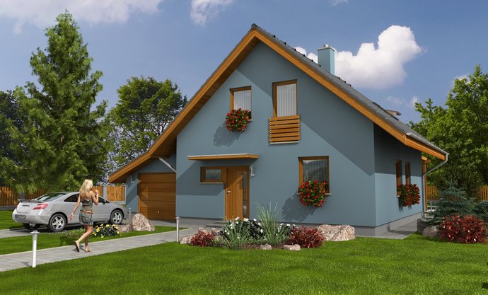 Jednoduchá architektura zapadne do jakékoliv zástavby. Předpokládá se orientace hlavního hřebene domu ve směru severozápad–jihovýchod. Dů... m poskytne pohodlné a praktické bydlení čtyř- až pětičlenné rodině, s nízkými provozními náklady. Má účelně využitou dispozici, lze přistavět garáž s pultovou střechou nebo přístřešek pro auto.
