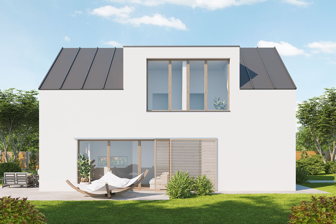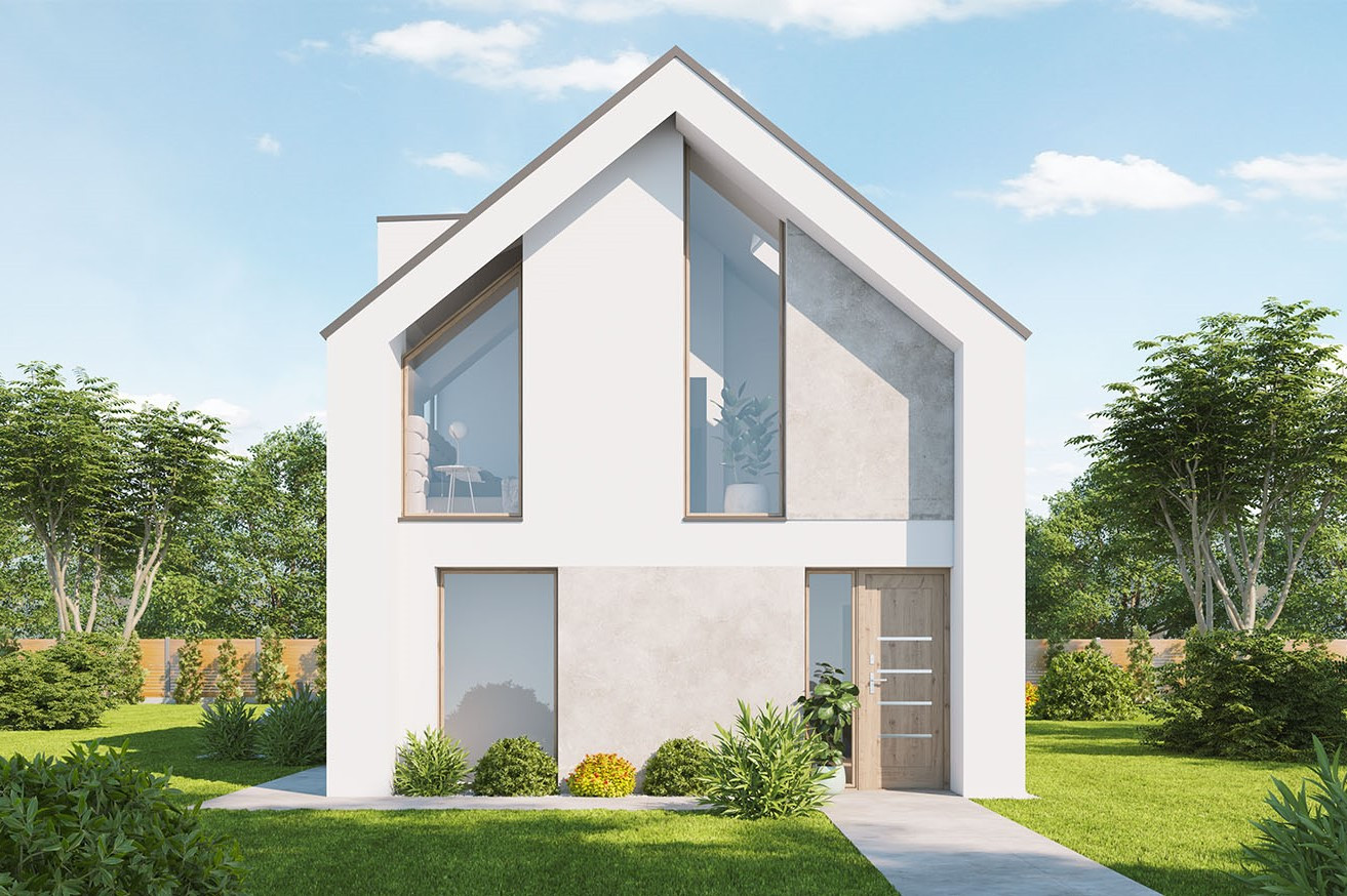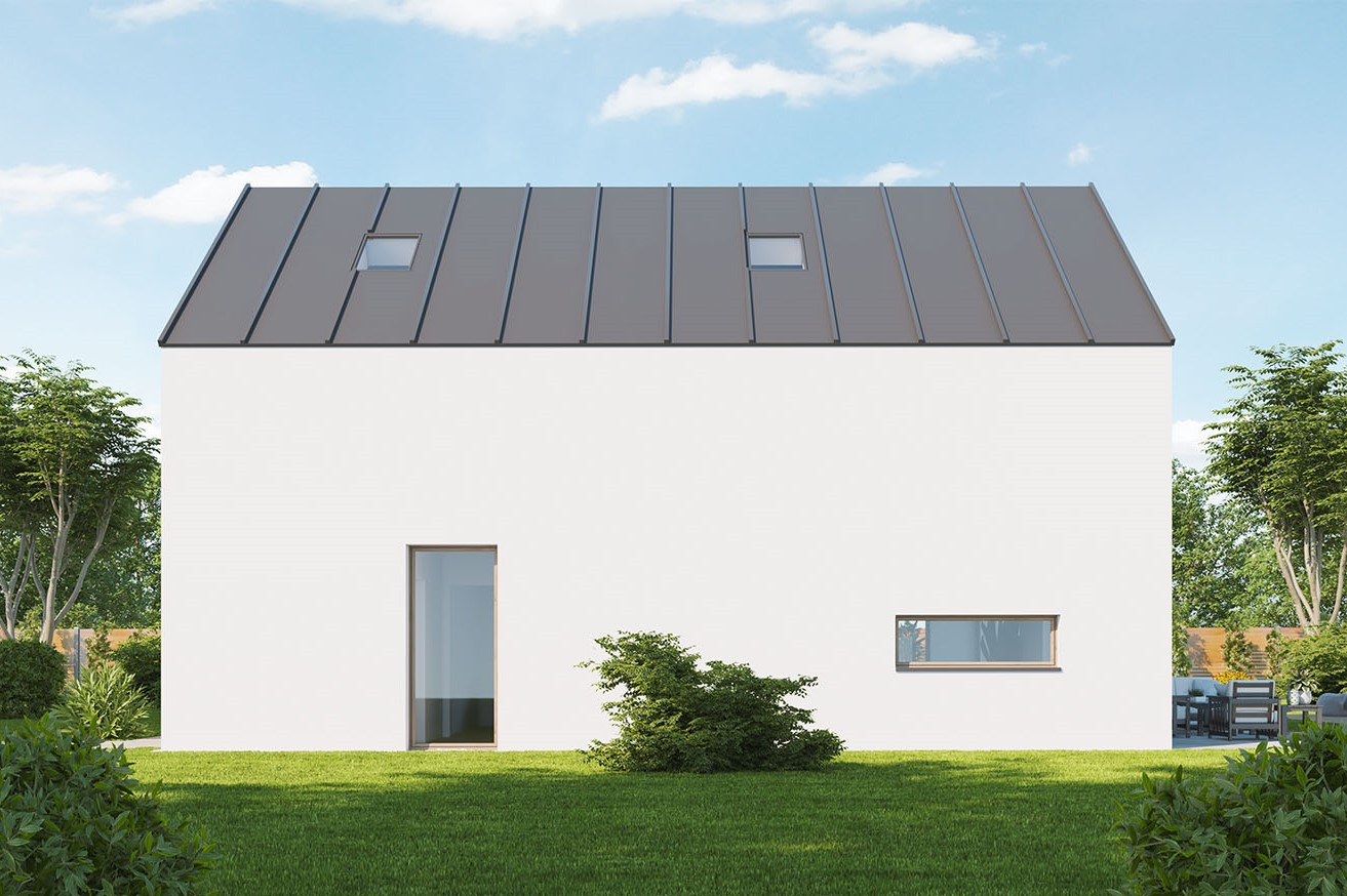 Dům dobře zapadne do města i na venkov a uspokojí nároky na moderní bydlení pro čtyřčlennou rodinu. Velký společný obývací prostor v přízemí je promyšleně rozdělen na kuchyňskou část a sezení, ke kladům patří také chráněná rohová terasa, pohodlné zázemí a dostatek úložného prostoru.