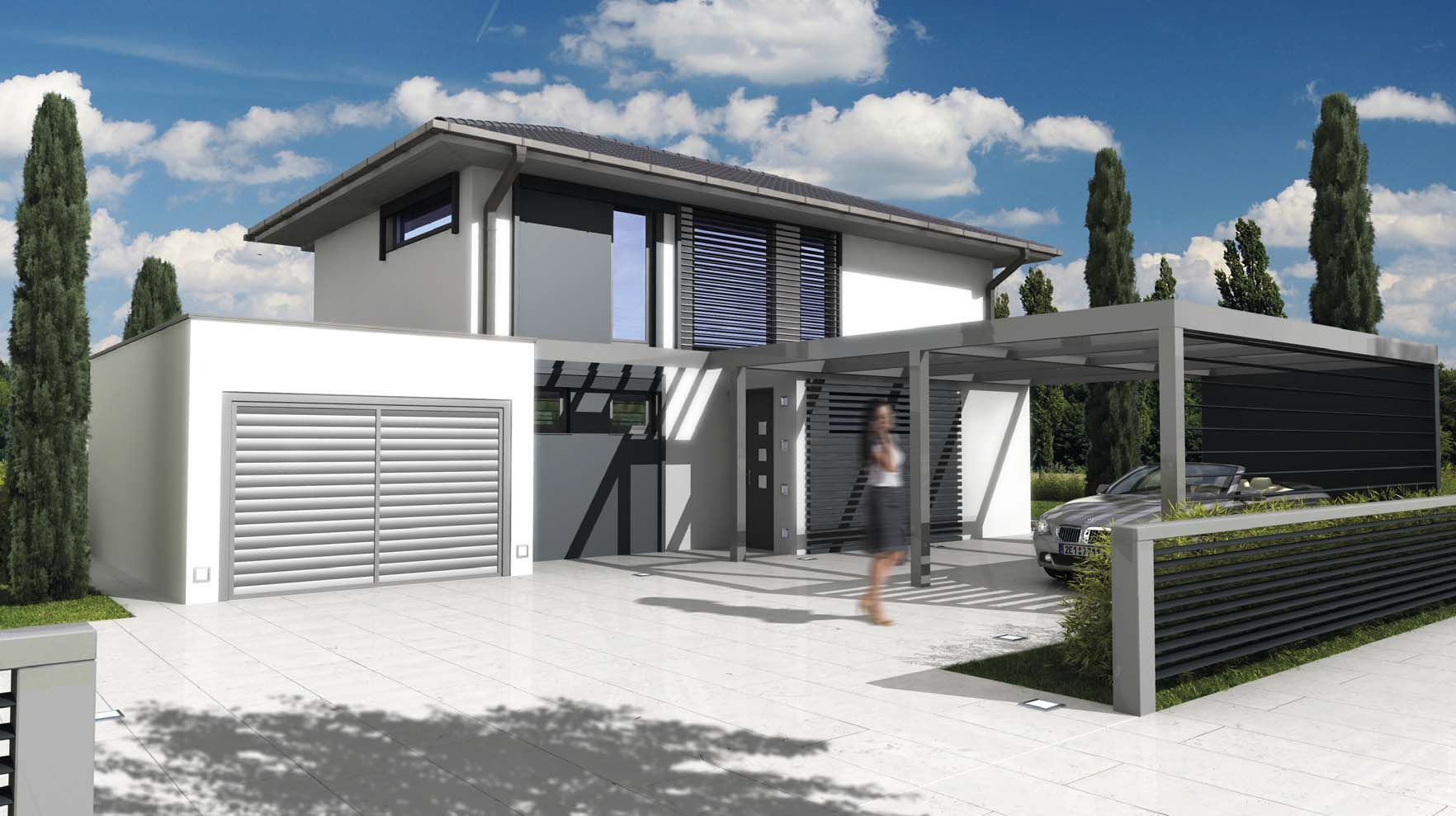 Moderní kompaktní architektura s pultovou střechou bude výrazná v městské i venkovské zástavbě, kde dům vynikne svou výškou. Postačí mu malý pozemek. Na velmi malé zastavěné ploše nabízí praktické a úsporné bydlení pro čtyřčlennou rodinu, pokoje v patře nejsou zmenšeny šikmými stropy jako v běžné podkroví. Ke schodišti je třeba projít přes celý obývací pokoj.