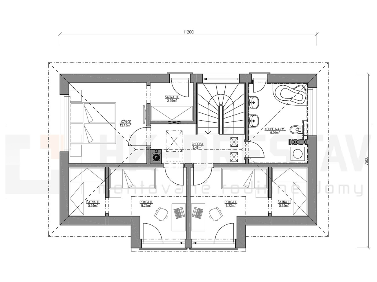 půdorys v patře je variabilní