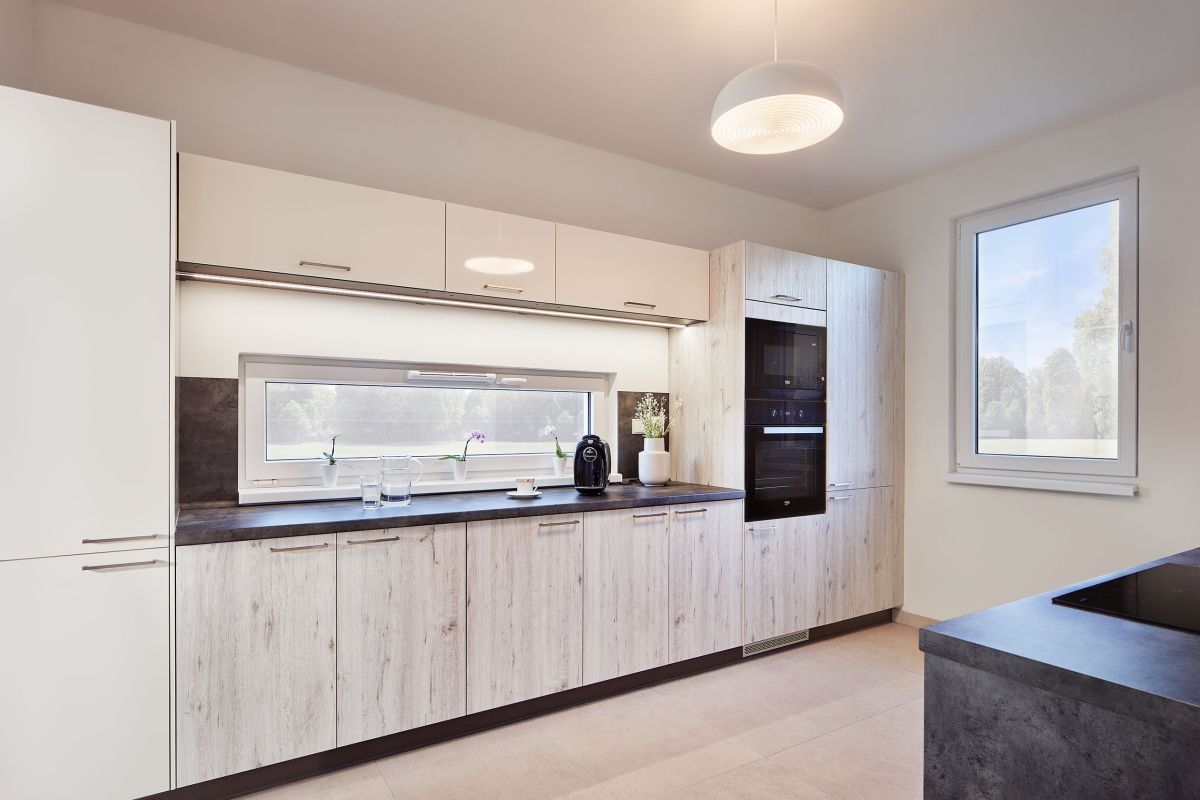 Moderní provedení IDEAL City je zásadní novinkou v nabídce CANABA. Využívá stejné zastavěné plochy jako klasická verze, tedy 78 m2 i shodné základní dispozice 5+1. Inovativní provedení střešní konstrukce přináší ovšem výrazně více vnitřního prostoru. Využitelnost obytné plochy domu 125 m2 je umocněna plnohodnotnou výškou místností v patře. Praktické dispozice, nabídka úložných prostor a maximální variabilita vnitřního uspořádání činí z domu IDEAL City jeden z nejžádanějších domů současnosti. Ideální tip na moderní, úsporné a výhodné bydlení i opravdu velké rodiny.