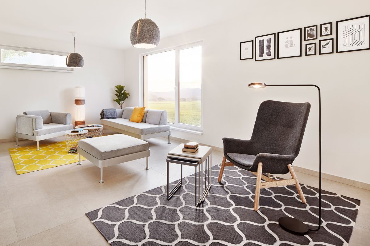 Dvoupodlažní dům s pultovou střechou je určen pro praktické bydlení čtyřčlenné rodiny. Vzhledem k výrazně prosklené hlavní fasádě je určen pro pozemky s orientací na jih, jihovýchod nebo jihozápad. Přestože nemá velkou zastavěnou plochu, je uvnitř velmi prostorný. Zaujme především impozantním společným obývacím prostorem s centrálním schodištěm a galerií.