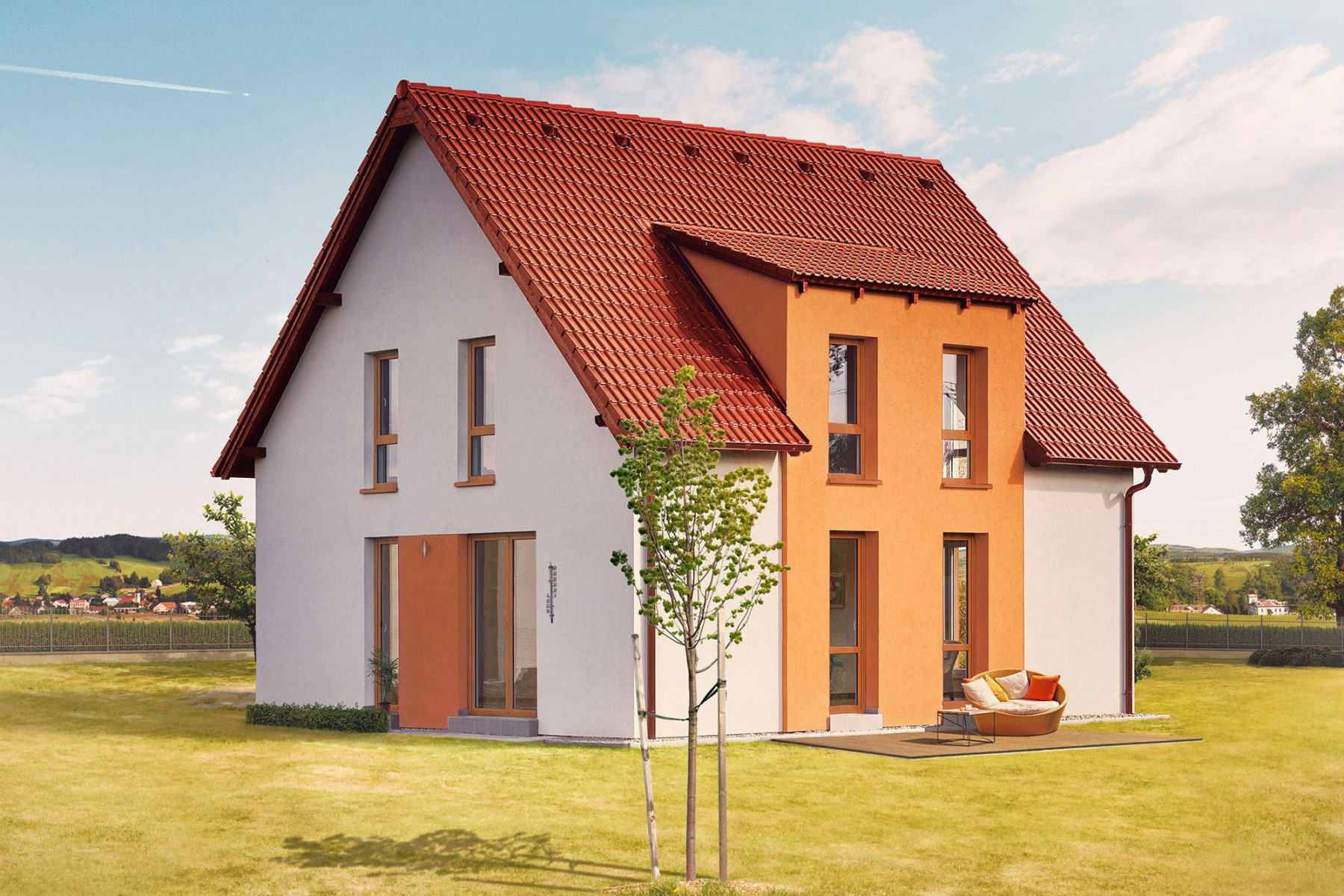 Stavba inspirovaná tradičním typem domu se sedlovou střechou se bude nejlépe hodit na venkov nebo do malého města. Je určena pro čtyř až pětičlennou rodinu a vybavena odpovídajícím zázemím. Nejhezčí částí domu je atypicky členěný společný obývací prostor, v podkroví jsou nadstandardně velké dětské pokoje. Výhodou je i přistavěná garáž s využitelnou půdou.