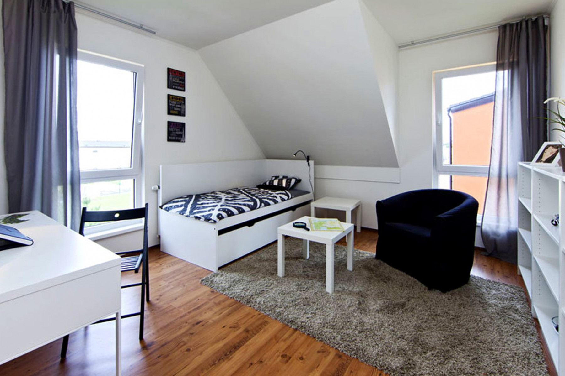 Místnosti se zkosenými stěnami bývají problematické co do využití a vybavení nábytkem.