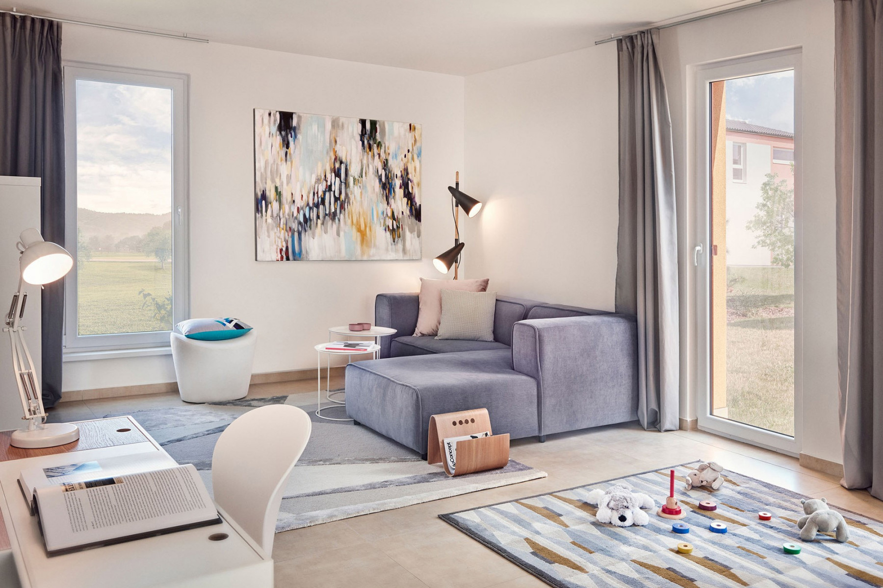 Architektura je vhodná jak do tradiční, tak i moderní zástavby, vnější vzhled lze snadno individuálně upravit. Dům je i při minim... ální zastavěné ploše prostorný a účelně vyřešený, pro stavbu postačí malý pozemek. Líbí se nám společná obývací část uspořádaná do L, kuchyň má samostatný vstup ze vstupní haly, takže s nákupy není třeba chodit daleko.