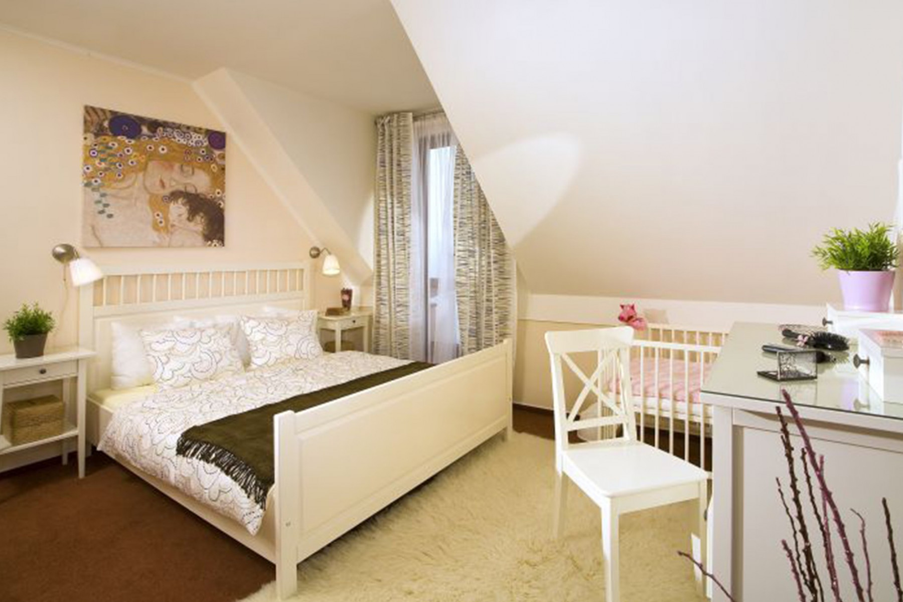 Místnosti se zkosenými stěnami bývají problematické co do využití a vybavení nábytkem.