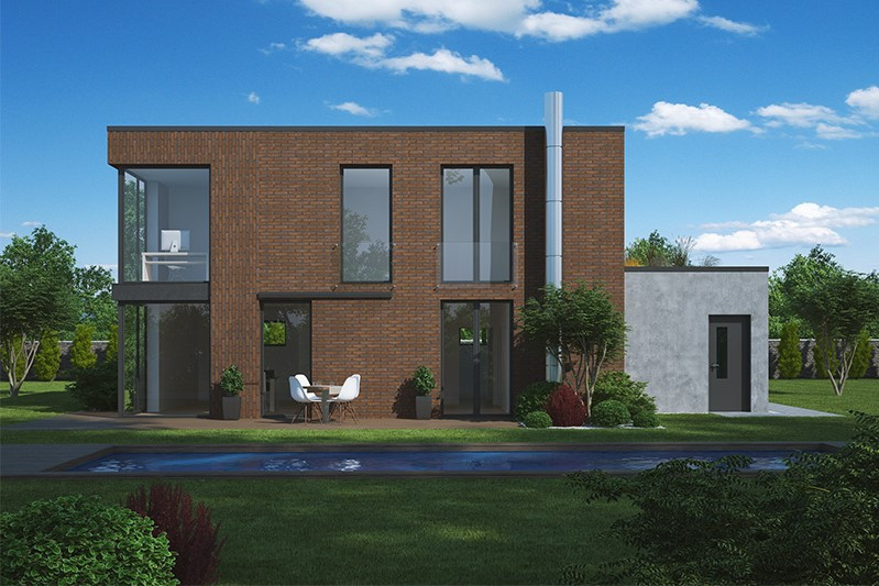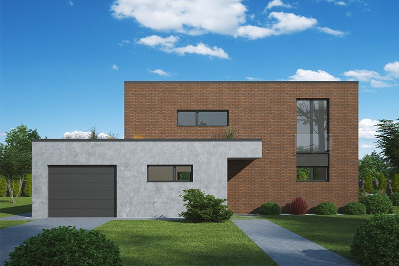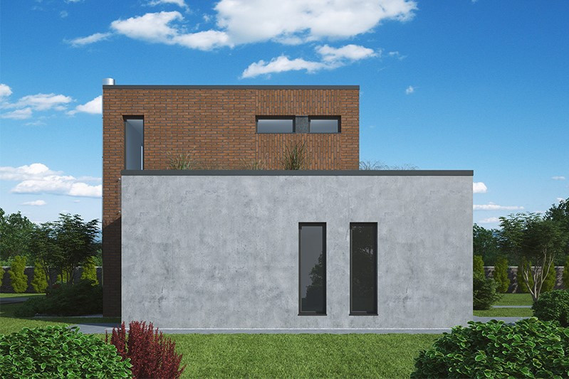 Jedná se o dvoupodlažní dům o dispozici 5 + kk s plochou střechou. Dobře vyřešená dispozice poskytne velkorysý prostor pro rodinné soužití i pro návštěvy a druhé nadzemní podlaží pak poskytuje naprosté soukromí pro každý z pokojů. V druhém nadzemním patře se nacházejí dva pokoje, koupelna a ložnice se svou vlastní koupelnou. Dalším skvělým prvkem je venkovní pergola a kryté parkování pro auta.