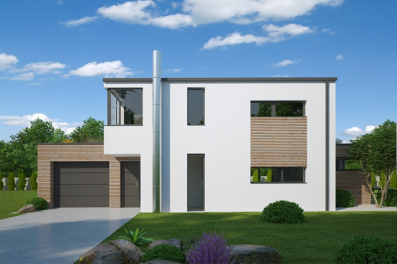 Nadčasový dům pro pohodlné a praktické bydlení. K benefitům patří velký společný obývací prostor přehledně uspořádaný do tvaru L, krytá terasa a hodně úložného prostoru. Jako jeden z mála katalogových domů zahrnuje i garáž pro dva automobily.