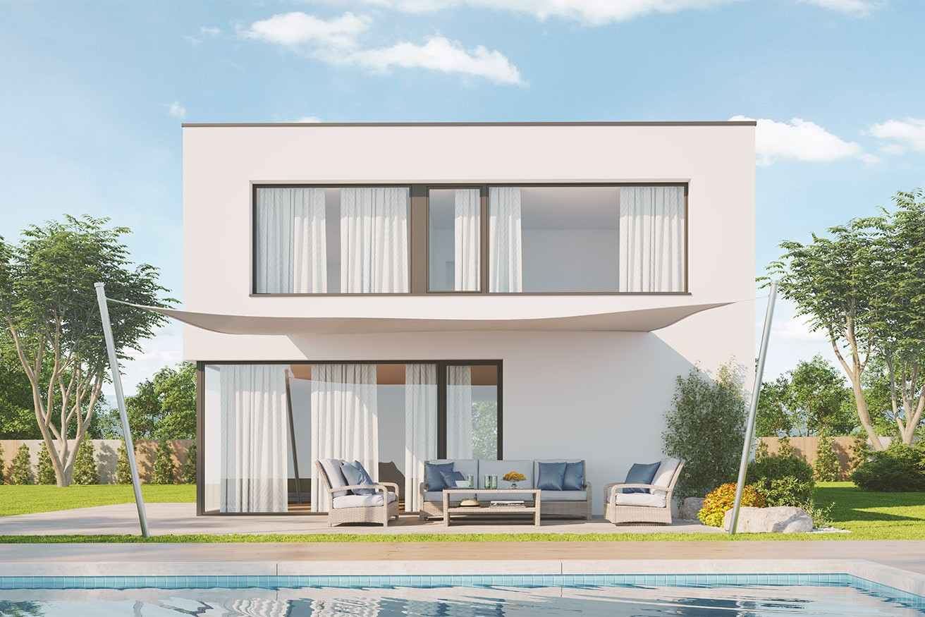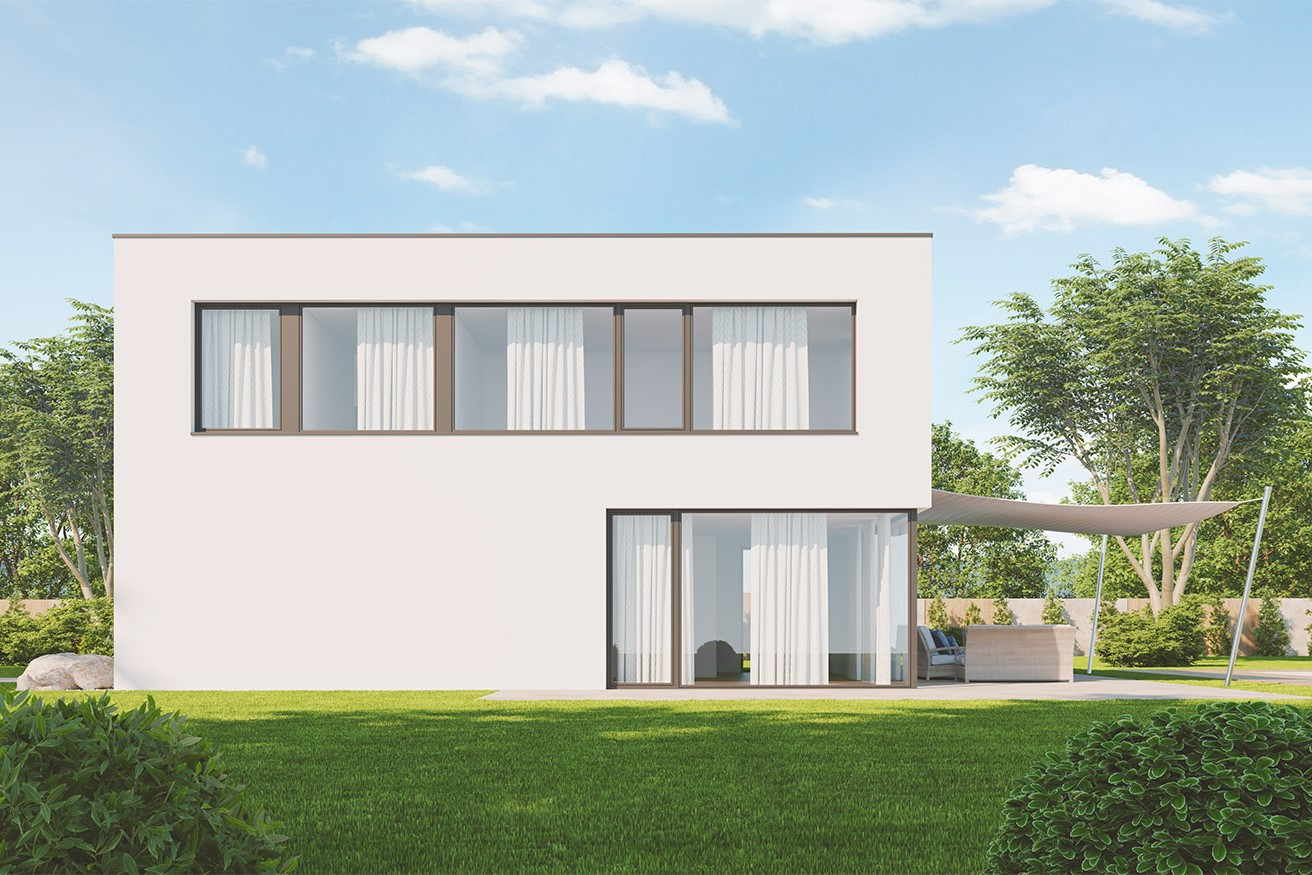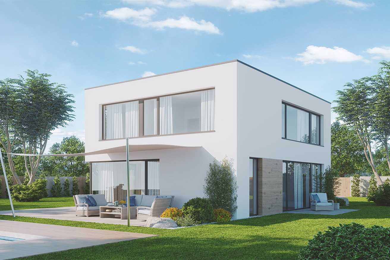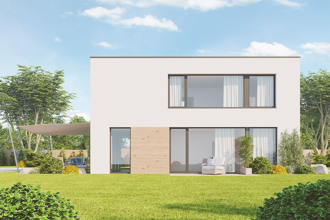 Jedná se o dvoupodlažní dům o dispozici 5 + kk s plochou střechou. Dobře vyřešená dispozice poskytne velkorysý prostor pro rodinné soužití i pro návštěvy a druhé nadzemní podlaží pak poskytuje naprosté soukromí pro každý z pokojů. V druhém nadzemním patře se nacházejí dva pokoje, koupelna a ložnice se svou vlastní koupelnou. Dalším skvělým prvkem je venkovní pergola a kryté parkování pro auta.