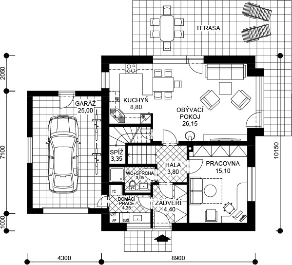 garáž propojená s domem