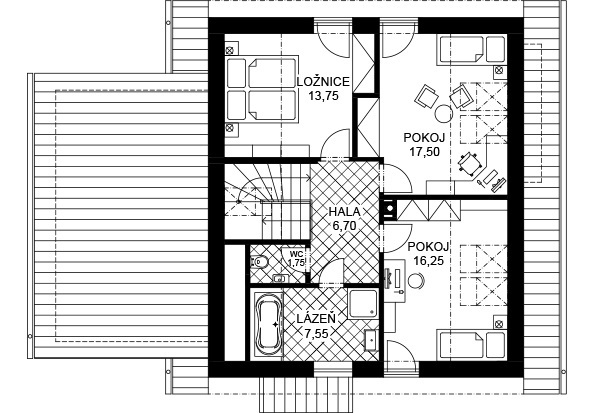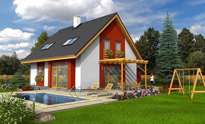 Díky možnosti zvolit různý tvar střechy dům dobře zapadne do městského i venkovského prostředí. Dispozice nabízí nadstandardní komfort pro až pětičlennou rodinu – velké pokoje a pohodlné zázemí včetně potřebného úložného prostoru.