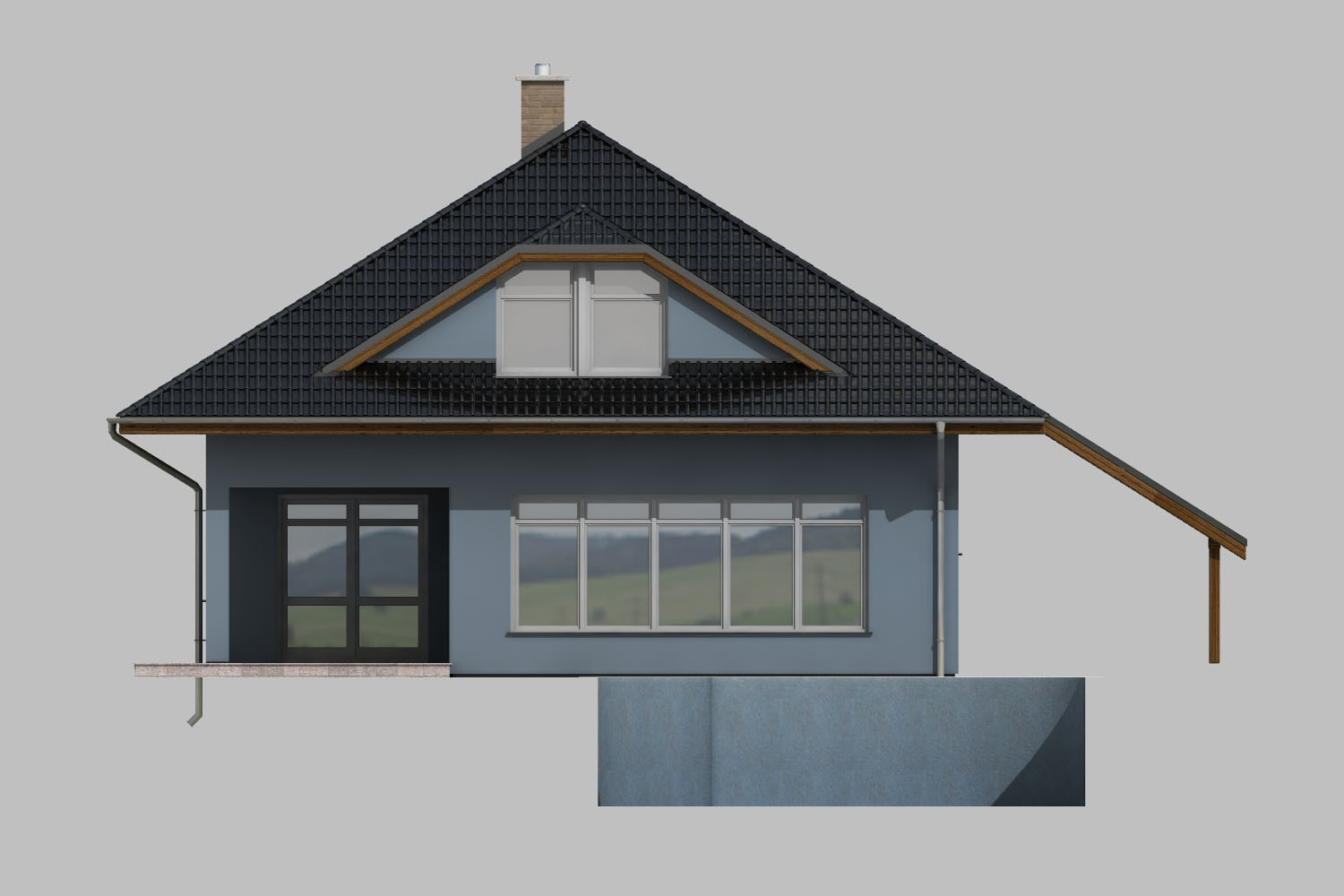 Jednoduchý nadčasový dům se sedlovou střechou je určen pro praktické a úsporné praktické bydlení čtyřčlenné rodiny. Má přehlednou dispozici s oblíbeným společným obývacím prostorem ve tvaru L. V přízemí se nachází i ložnice rodičů s vlastní koupelnou, děti obývají podkroví a každý má v domě své soukromí. Praktické je i kryté stání pro auto u vstupu do domu.