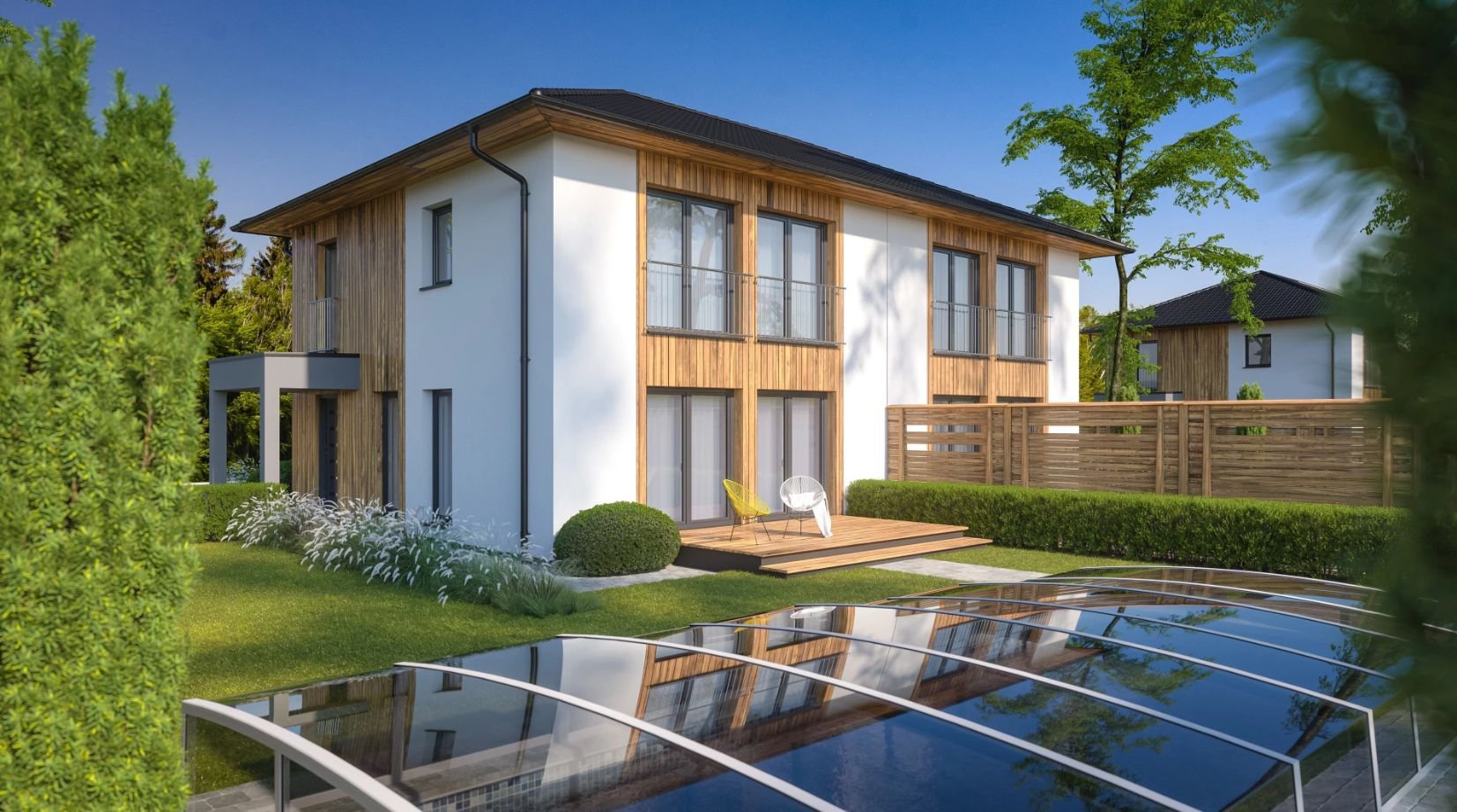 Elegantní pasivní dřevostavba byla navržena tak, aby maximálně využila potenciál pozemku a majitelům poskytla dostatek prostoru s ohledem na měnící se potřeby rodiny v budoucnu i cenovou dostupnost.