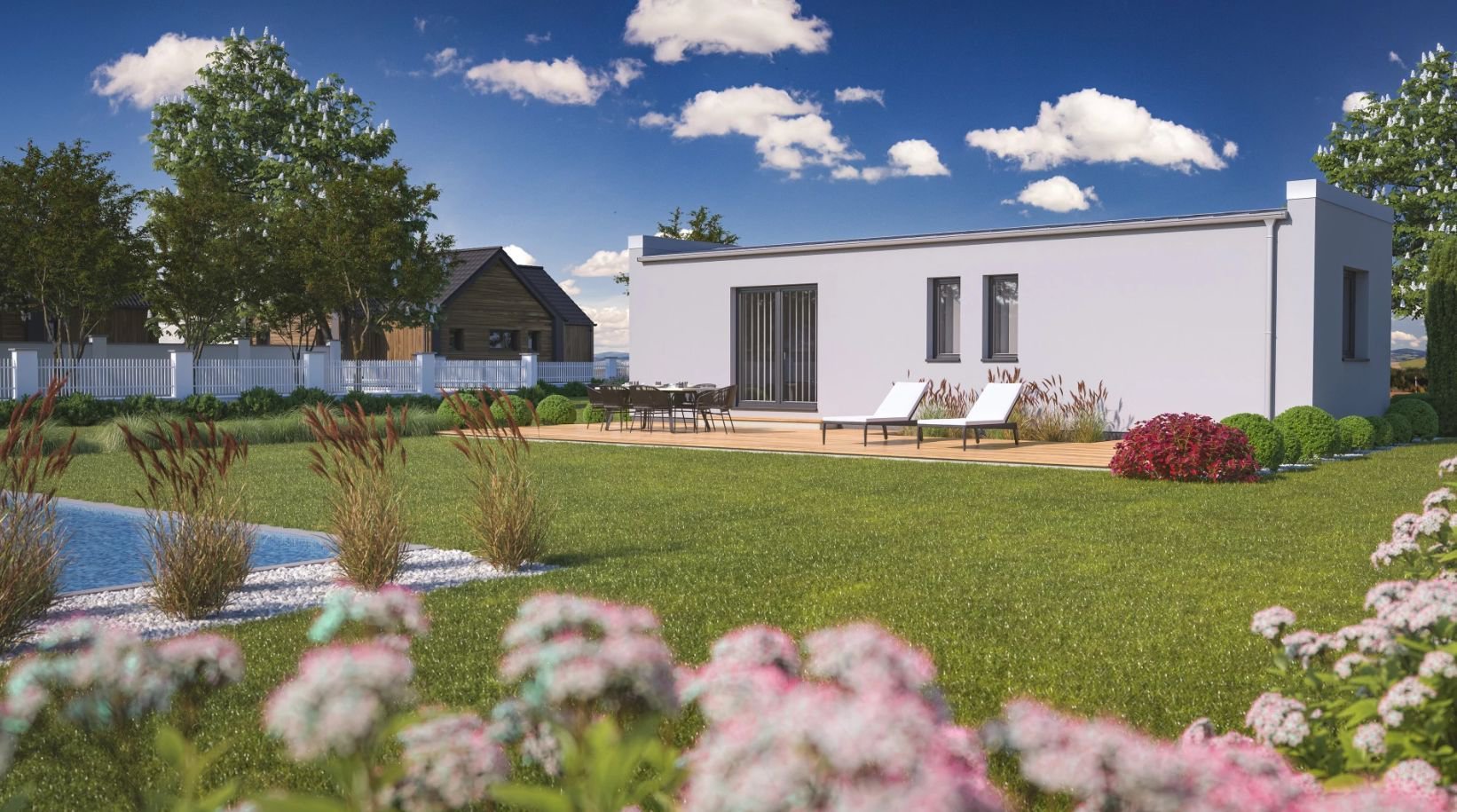 Jednoduchá moderní stavba se sedlovou střechou je nadčasová a dobře se hodí do přírody i do města. Velký obývací pokoj, přehledné uspořádání a dobře dimenzované zázemí jsou předpokladem pro pohodlné bydlení. I u domu podélného tvaru se podařilo vytvořit chráněnou rohovou terasu.