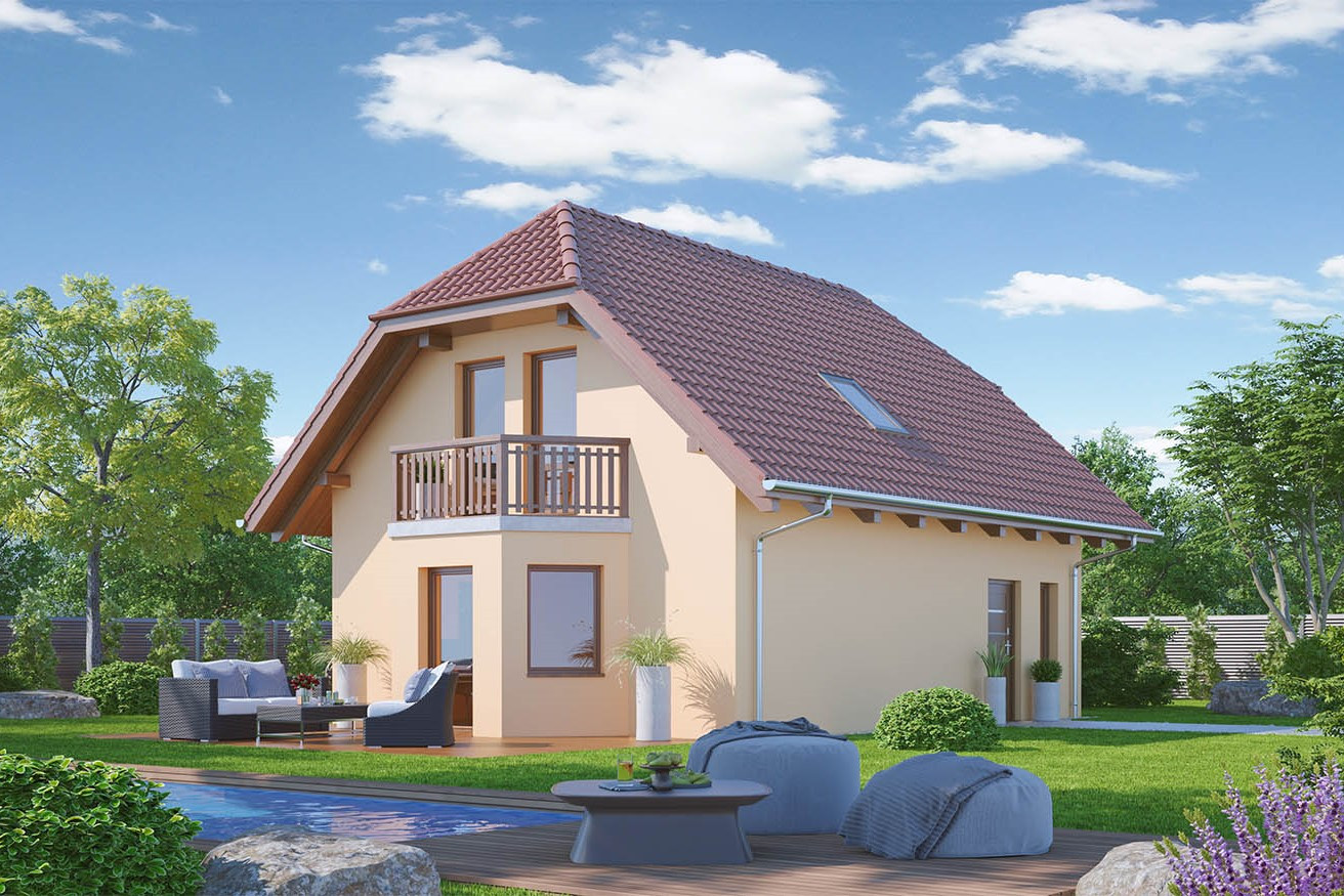 Velmi malá zastavěná plocha umožňuje výstavbu na malém pozemku, přitom v rámci účelné dispozice dům nabízí moderní komfort s nízkými náklady na provoz domácnosti. Výhodou je oddělená společná obývací část a ložnicová zóna a také dobré prosvětlení podkroví – má jak klasická fasádní, tak i střešní okna.